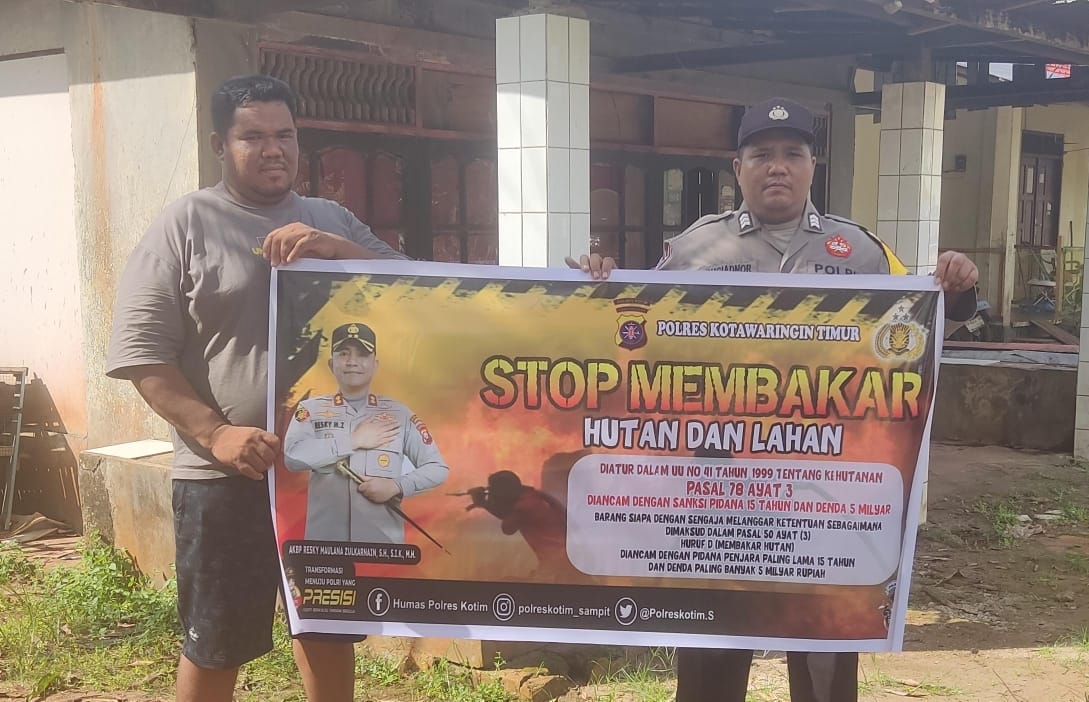 Sosialisasi dilakukan personal Polsek Cempaga dengan membentangkan spanduk larangan membakar hutan dan lahan, disamping itu juga menghimbau kepada warga agar tidak membuka lahan atau kebun dengan cara membakar serta mengajak masyarakat untuk membantu Polri dalam mencegah terjadinya kebakaran hutan dan lahan, kegiatan tersebut bertempat di Desa Cempaka Mulia Barat Kecamatan Cempaga Kabupaten Kotim – Kalteng.