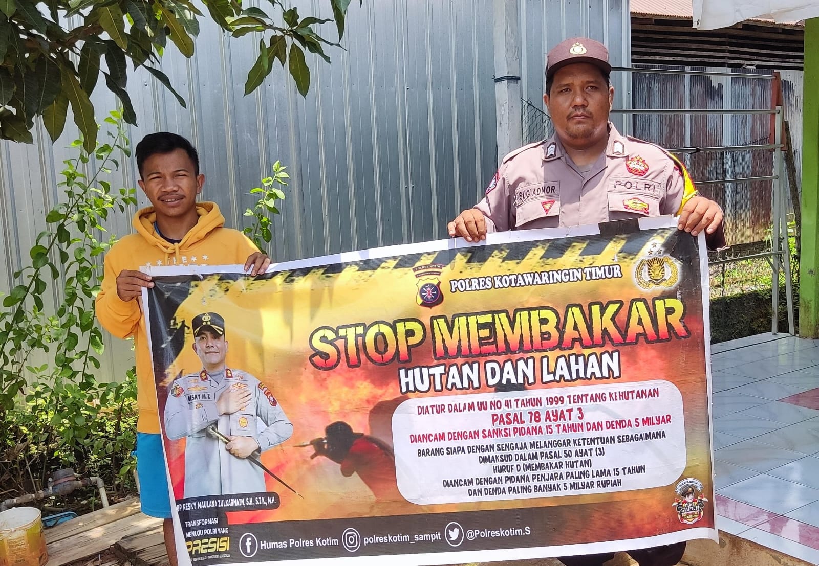 Sosialisasi dilakukan personal Polsek Cempaga dengan membentangkan spanduk larangan membakar hutan dan lahan, disamping itu juga menghimbau kepada warga agar tidak membuka lahan atau kebun dengan cara membakar serta mengajak masyarakat untuk membantu Polri dalam mencegah terjadinya kebakaran hutan dan lahan, kegiatan tersebut bertempat di Desa Cempaka Mulia Barat Kecamatan Cempaga Kabupaten Kotim – Kalteng.