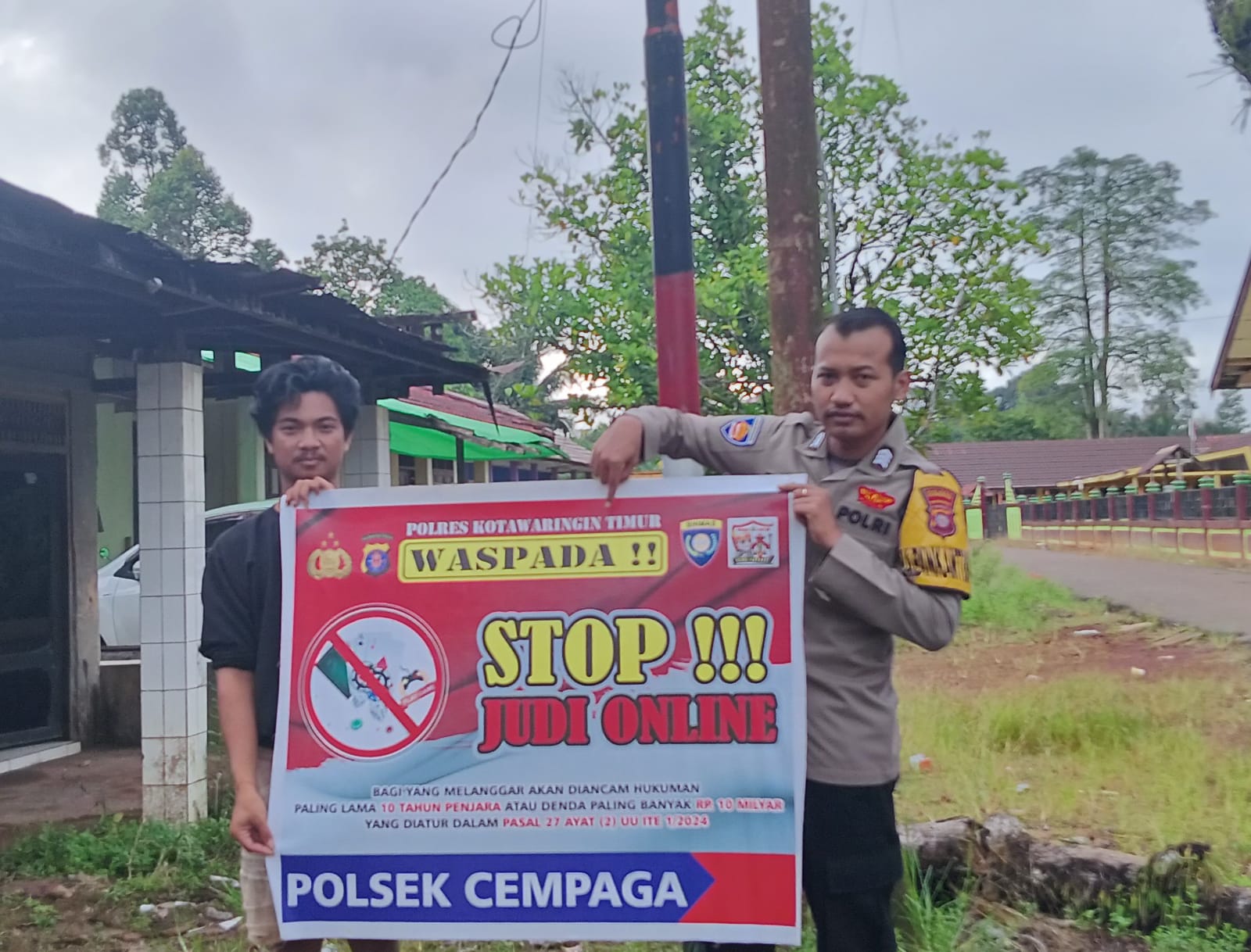 Kotim- Personel Polsek Cempaga Polres Kotim (Kotawaringin Timur) jajaran Polda Kalteng, gelar sosialisasi terkait dengan larangan Tindak Pidana Perjudian, kepada warga Desa Cempaka Mulia Barat Kecamatan Cempaga Kabupaten Kotawaringin Timur. Selasa (13/5/2025) 10.30 wib.