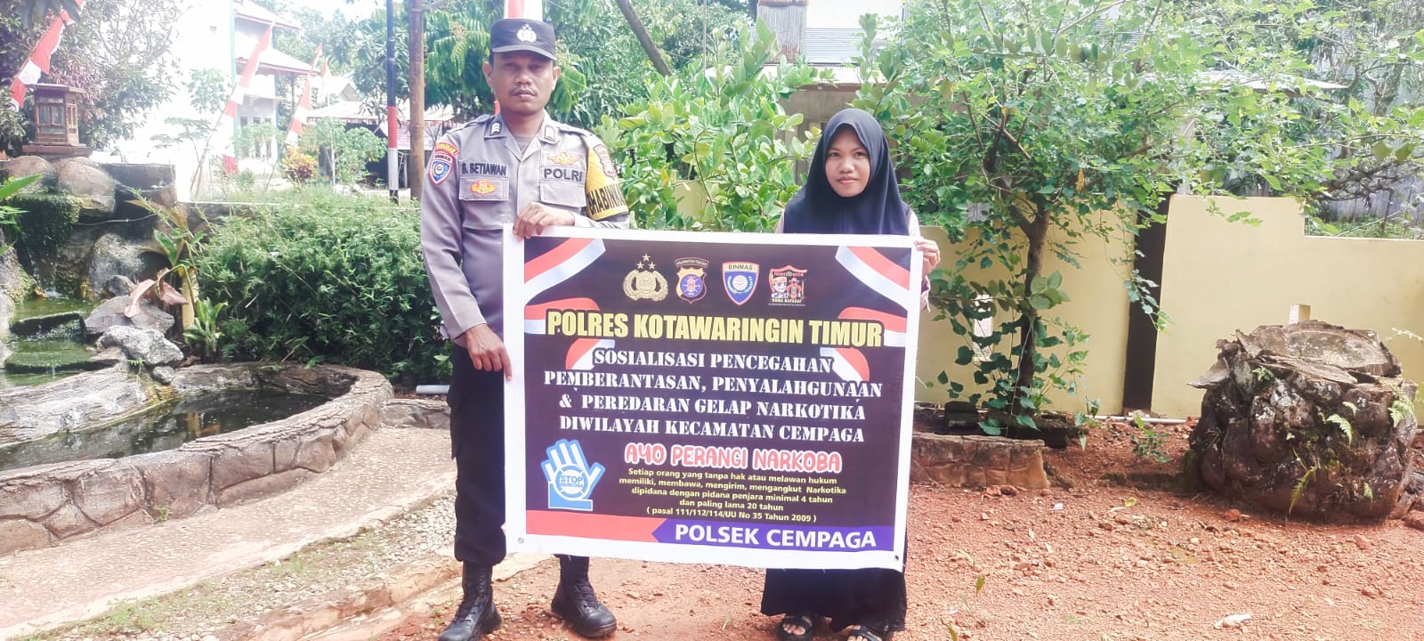 Kotim- Personil Polsek Cempaga Polres Kotim jajaran Polda Kalteng, gelar sosialisasi terkait Pencegahan Pemberantasan Penyalahgunaan dan Peredaran Gelap Narkotika, kepada warga Desa Cempaka Mulia Barat Kecamatan Cempaga Kabupaten Kotawaringin Timur. Jumat (30/8/2024) 10.40 wib