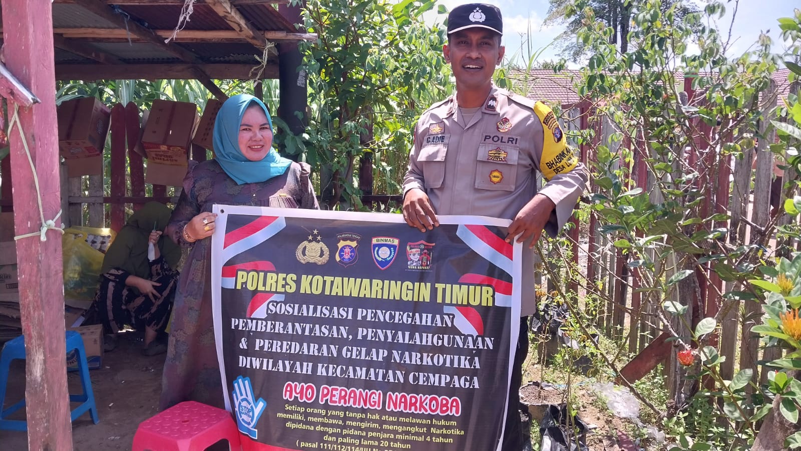 Kotim- Personil Polsek Cempaga Polres Kotim jajaran Polda Kalteng, gelar sosialisasi terkait Pencegahan Pemberantasan Penyalahgunaan dan Peredaran Gelap Narkotika, kepada warga Desa Luwuk Ranggan Kecamatan Cempaga Kabupaten Kotawaringin Timur. Sabtu (14/9/2024) 10.00 wib
