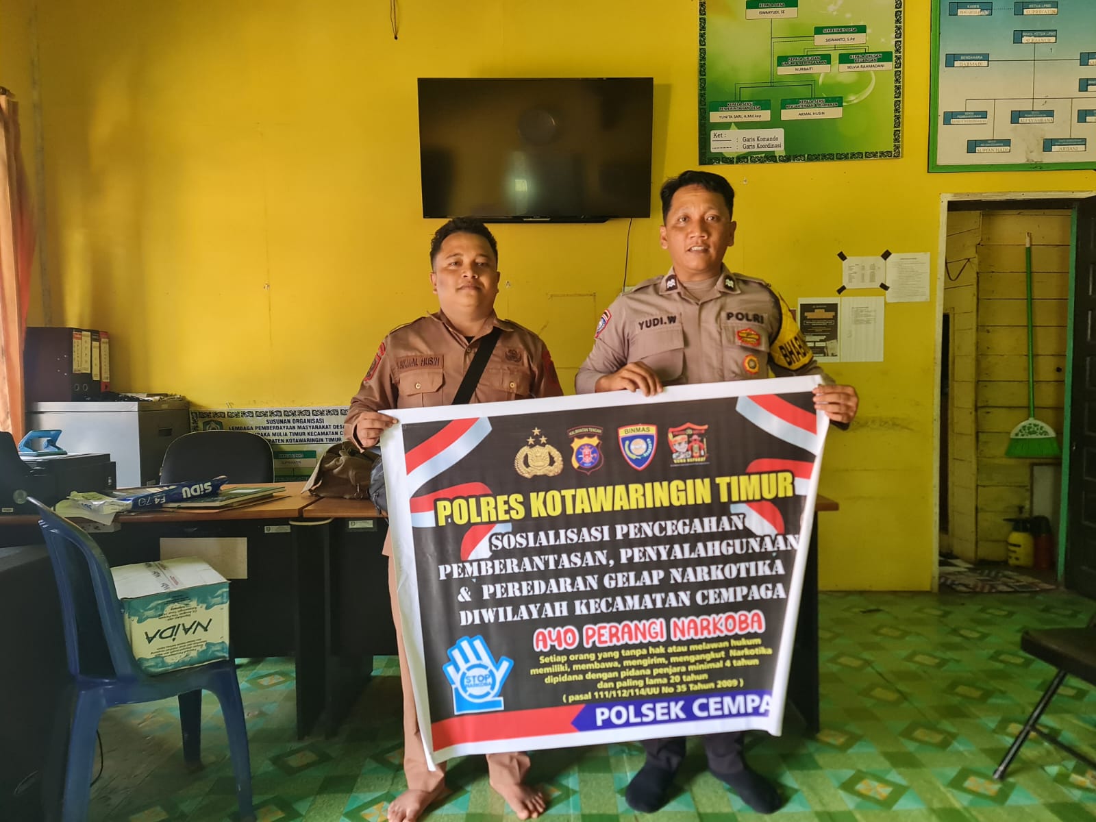 Bentangkan spanduk Polsek Cempaga Sosialisasi Penyalahgunaan Narkotika