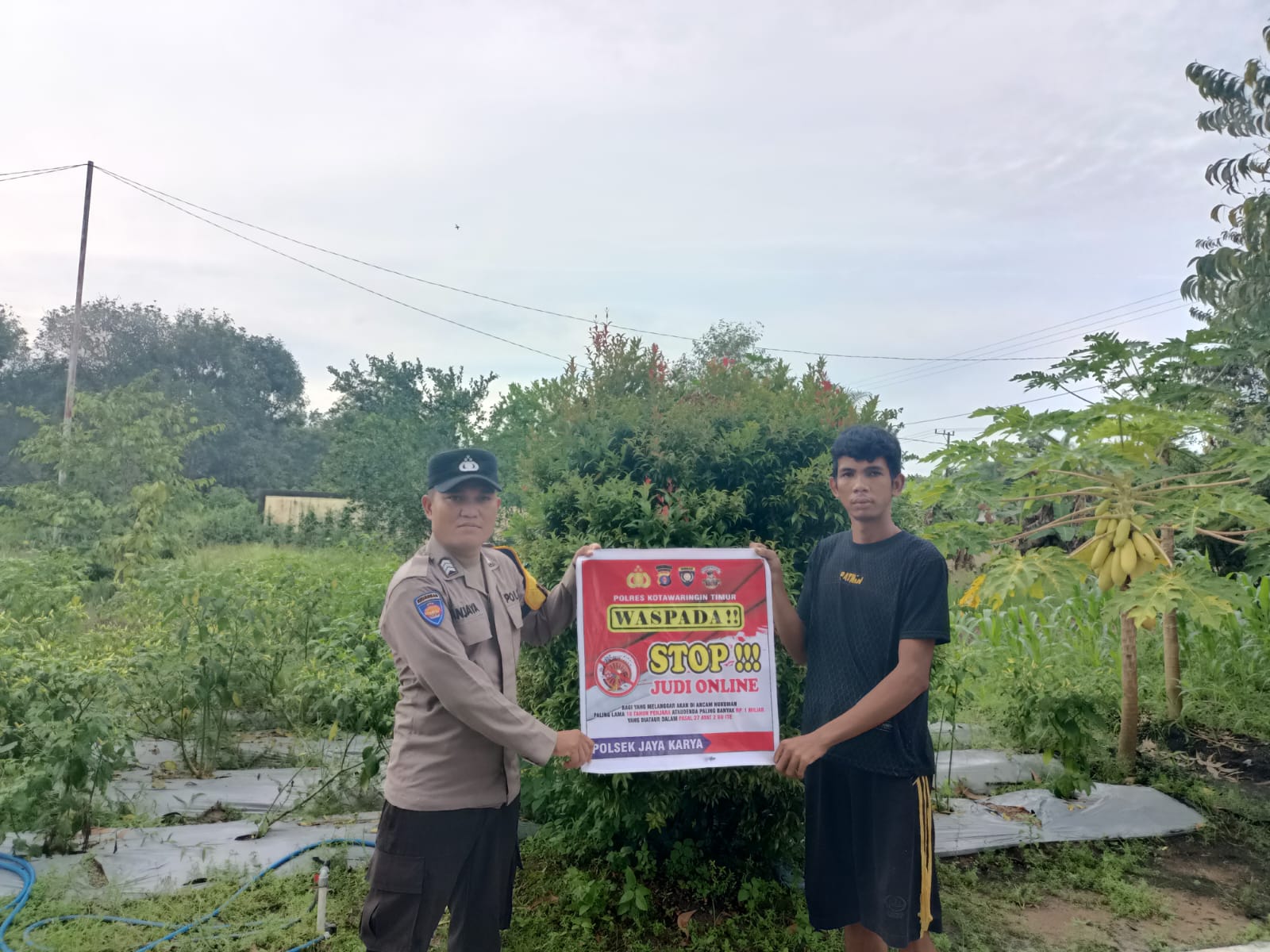 Kotim- Personel Polsek Jaya Karya Samuda Polres Kotim (Kotawaringin Timur) jajaran Polda Kalteng, gelar sosialisasi terkait dengan larangan dan bahayanya Tindak Pidana Perjudian kepada warga Desa Jaya Kelapa kecamatan Mentaya Hilir Selatan Kabupaten Kotawaringin Timur. Sabtu (12/4/2025) 10.30 wib.