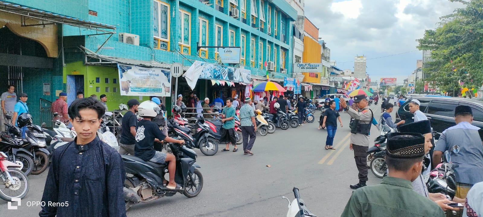Beri rasa aman pada saat Pelaksanaan Shalat Jumat, Polsek KP. Mentaya melakukan pengamanan dan Pengaturan lalu lintas di depan Masjid Madinatul Al Mubarokah Jl.A.Yani Sampit