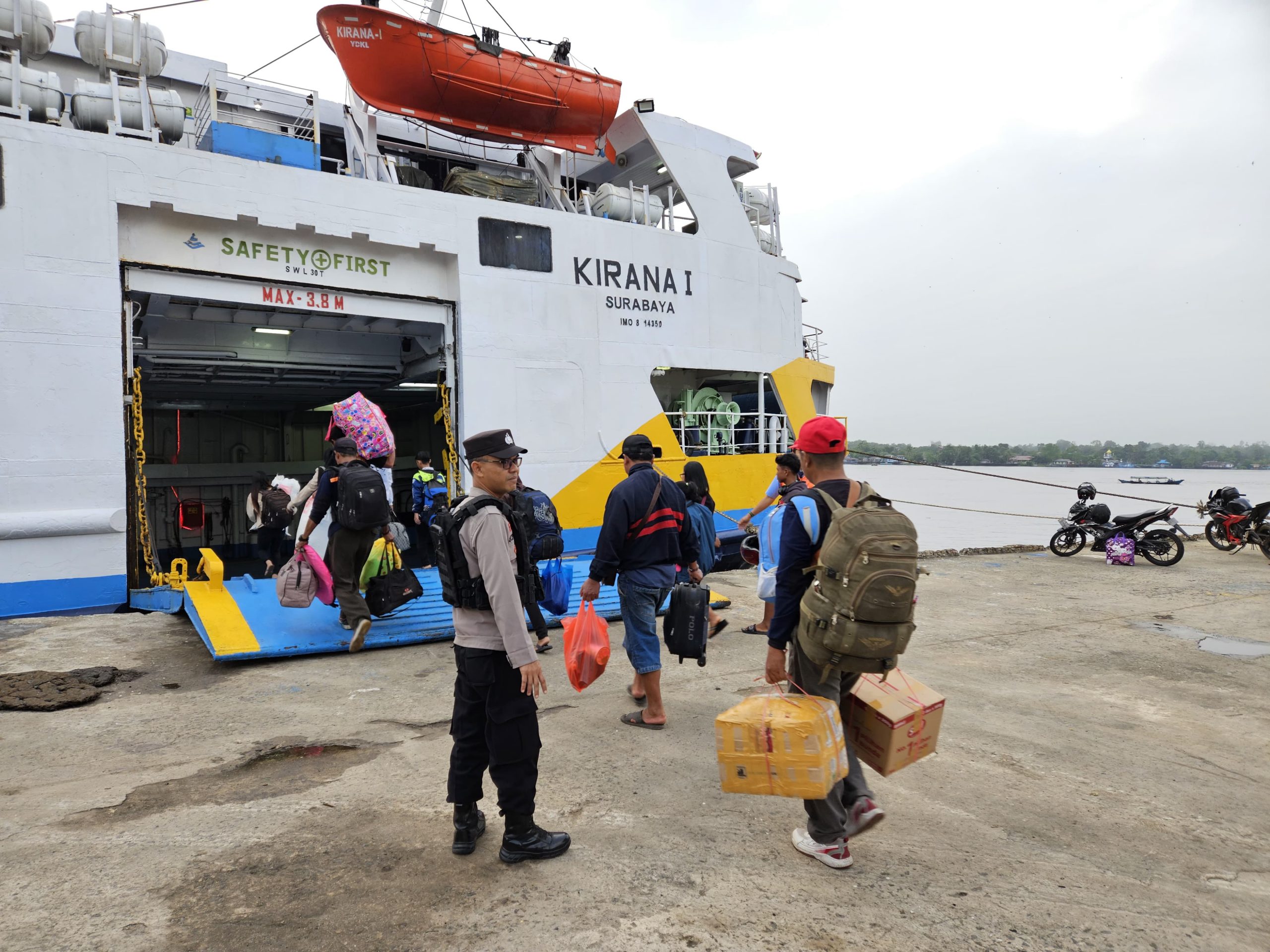 .Kotim – Polsek KP. Mentaya Polres Kotawaringin Timur jajaran Polda Kalteng melakukan Pengamanan dan Pengawasan Perjalanan Orang di Pelabuhan Pelindo Sampit pada saat kedatangan KM. KIRANA I di Pelabuhan Pelindo Sampit , Minggu (7/07/2024)