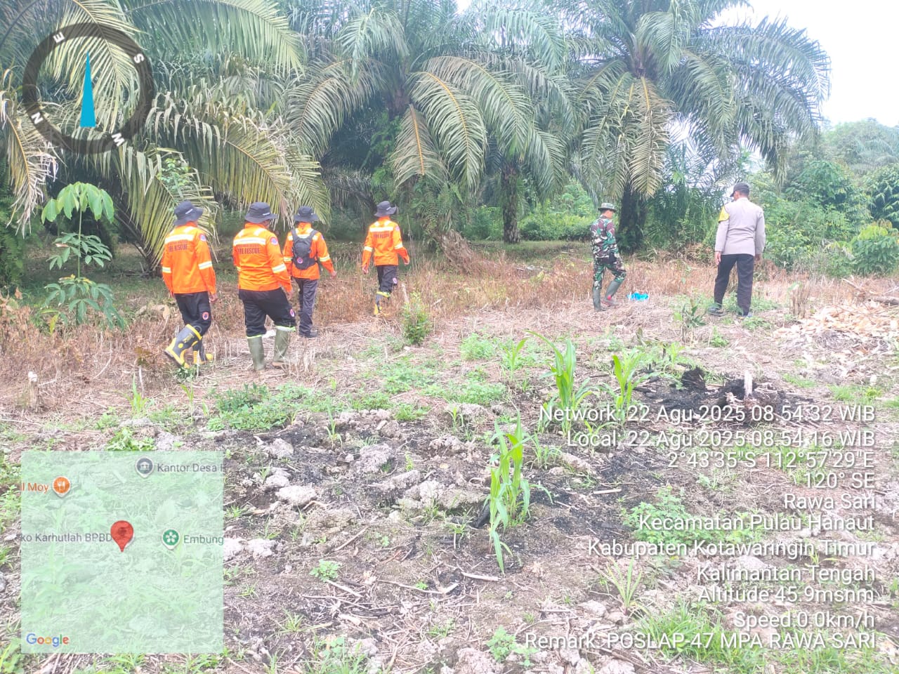 Pulau Hanaut ~ Meskipun Cuaca Saat ini terkadang hujan diwilayah Kec.Pulau Hanaut , Tim Poslap 47 Terdiri dari Bhabinkamtibmas Polsek Pulau Hanaut Aiptu M.Shoim bersama Petugas Babinsa Kopda Sandi dan Masyarakat peduli api (MPA) terus melaksanakan kegiatan Patroli Karhutla di tempat tempat wilayah yang masih dia ggap rawan Kathutla diwilayah Kec.Pulau Hanaut Kab.Kotim, Jum’at (22/8/2025).Siang.