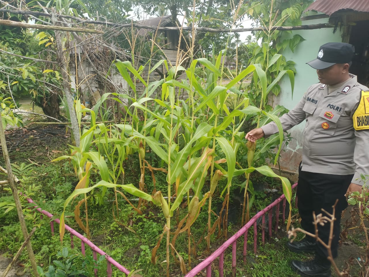 Dalam kegiatan itu, Brigpol Daris melakukan pengecekkan rutin ke pekarangan warga yang digunakaan untuk Menanam Jagung Manis, Bhabinkamtibmas juga memberikan motivasi kepada warga agar menjadikan pekarangan yang ada untuk mendukung ketahanan pangan baik dalam bidang Pertanian, Peternakan maupun Perikanan yang bermanfaat memenuhi sumber pangan masyarakat.