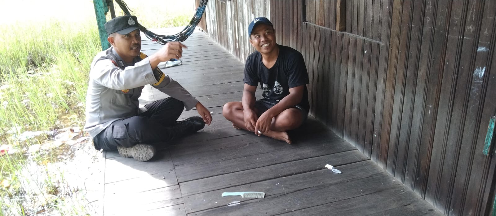 Bhabinkamtibmas Desa Camba Polsek Kota Besi Bripka Hendry terlihat menyambangi warga dan berdialog dengan warga yang disambanginya. Dalam kesempatan tersebut Bripka Hendry menyampaikan pesan – pesan Kamtibmas kepada warga binaannya.
