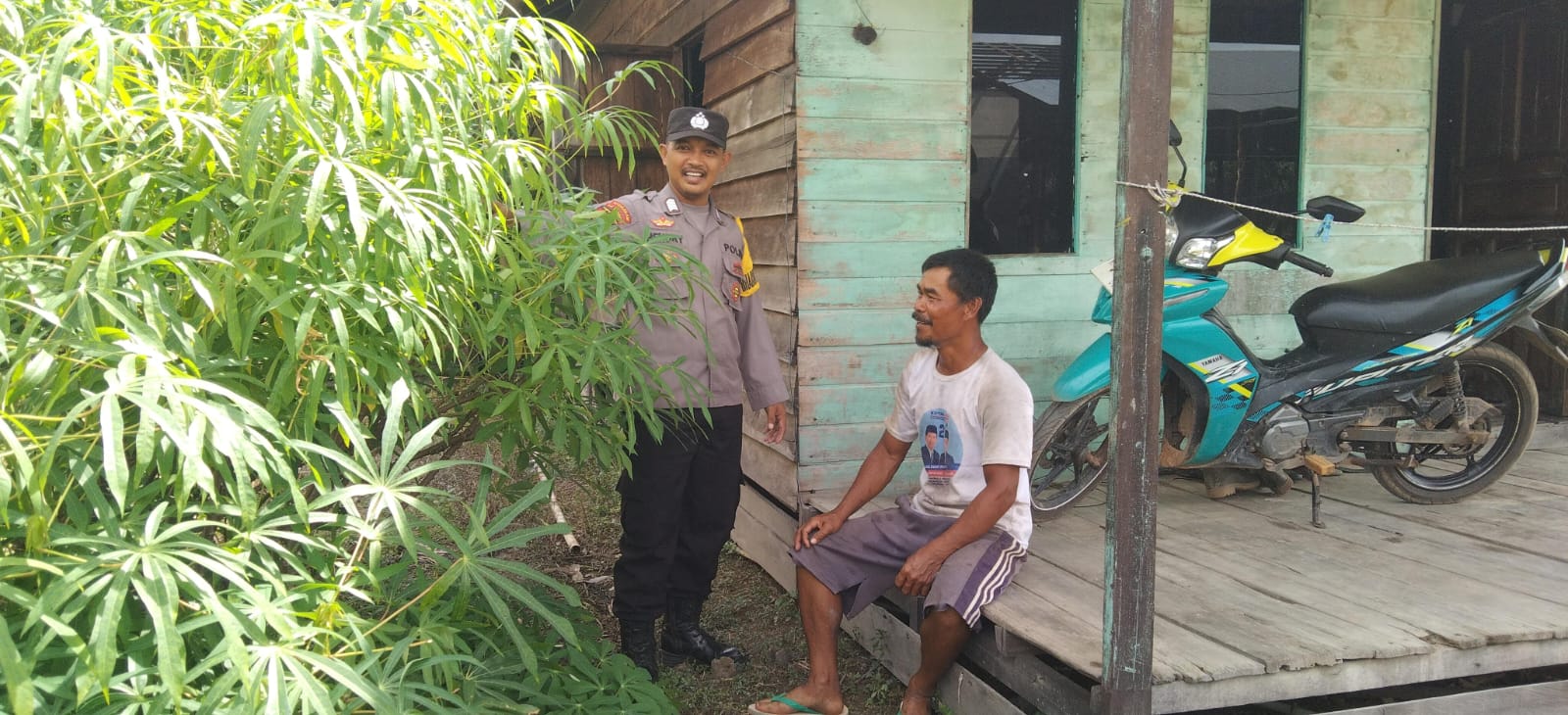 Bhabinkamtibmas Desa Camba Polsek Kota Besi Bripka Hendry terlihat menyambangi warga dan berdialog dengan warga yang disambanginya. Dalam kesempatan tersebut Bripka Hendry menyampaikan pesan – pesan Kamtibmas kepada warga binaannya.