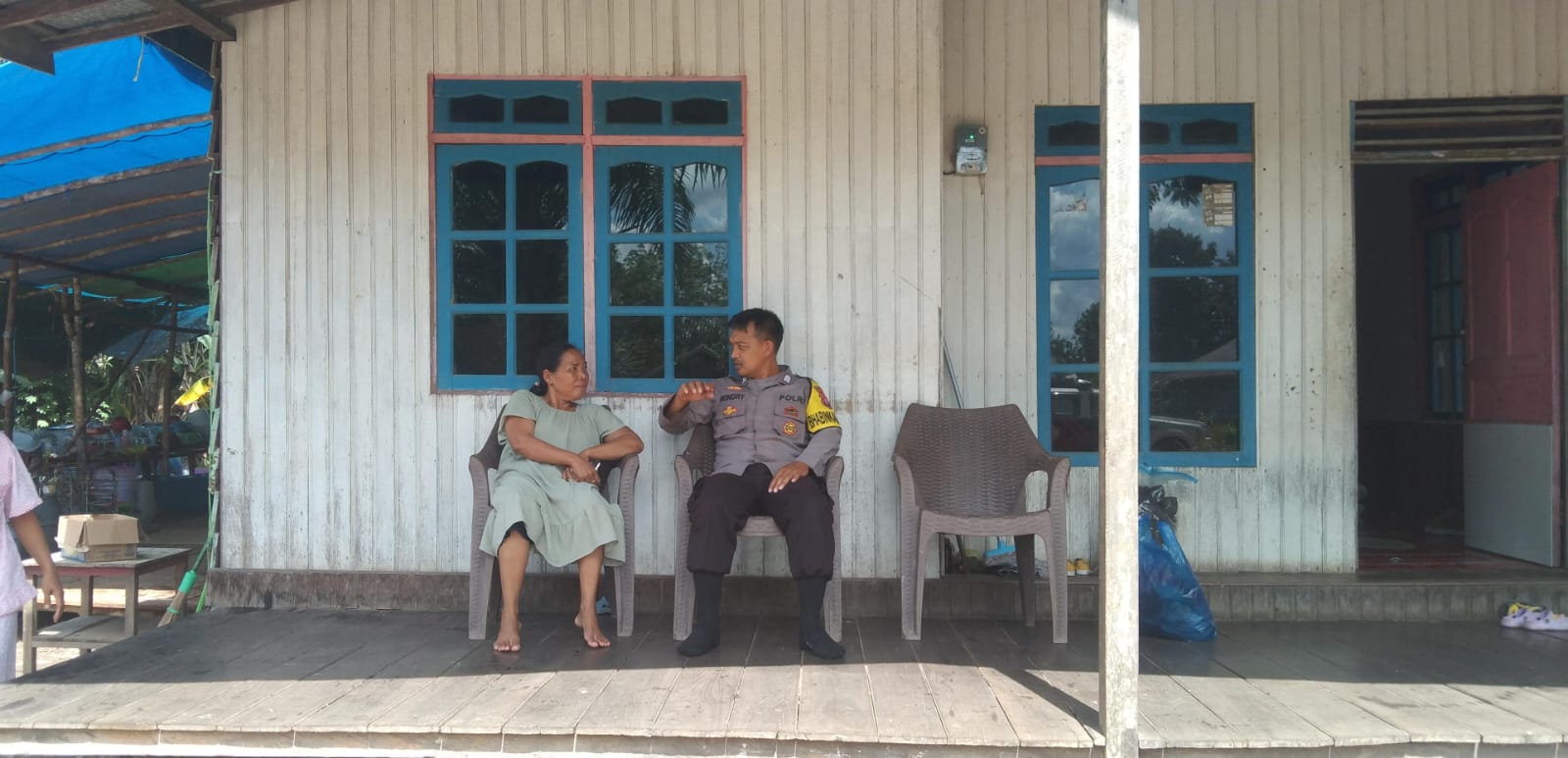 Bhabinkamtibmas Desa Camba Polsek Kota Besi Bripka Hendry terlihat menyambangi warga dan berdialog dengan warga yang disambanginya. Dalam kesempatan tersebut Bripka Hendry menyampaikan pesan – pesan Kamtibmas kepada warga binaannya.