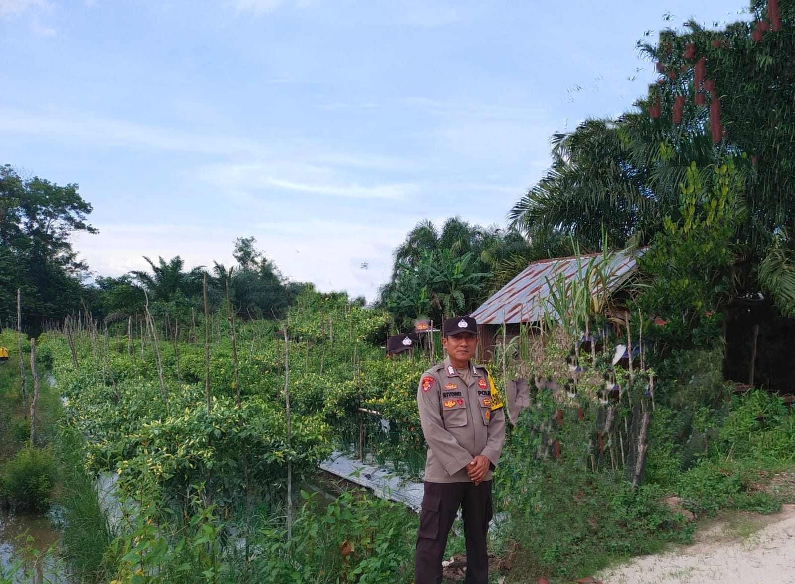 Berlokasi lahan milik warga Desa Tanah Putih Kecamatan Telawang Bripka Riyono kunjungi petani yang melakukan pembudidayaan tanaman cabai sebagai komitmen Polri dalam mendukung Asta Cita menuju Indonesia Emas 2045, dengan fokus khusus pada ketahanan pangan sebagai pilar utama.