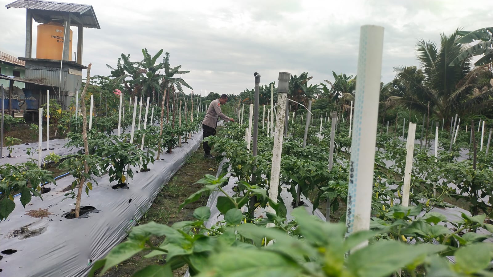 Berlokasi lahan milik warga Desa Tanah Putih Kecamatan Telawang Bripka Riyono kunjungi petani yang melakukan pembudidayaan tanaman cabai sebagai komitmen Polri dalam mendukung Asta Cita menuju Indonesia Emas 2045, dengan fokus khusus pada ketahanan pangan sebagai pilar utama.