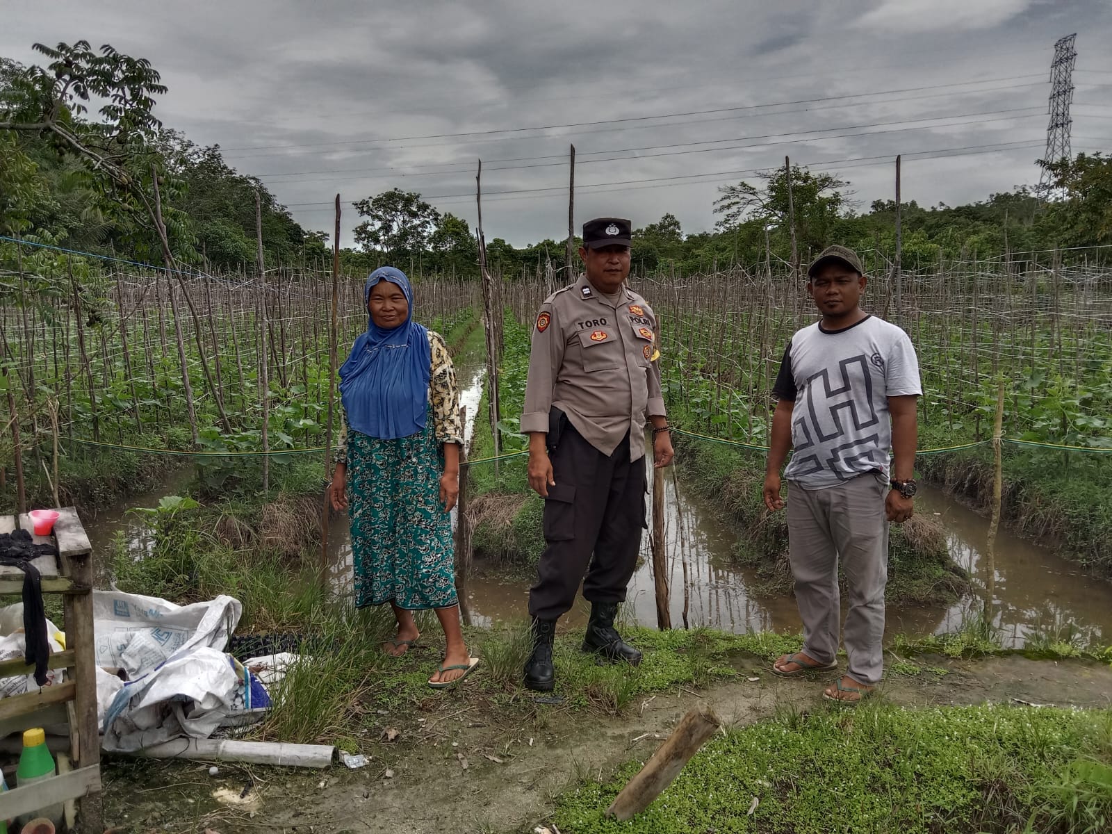 Lahan tersebut milik Sdri ibu Wagini yang terletak di pekarangannya yang ditanami sayuran jenis gambas dan tomat, Bhabinkamtibmas Aiptu Kasiyantoro melakukan pengecekan Untuk memastikan pertumbuhan dan kesuburan tanaman tersebut.