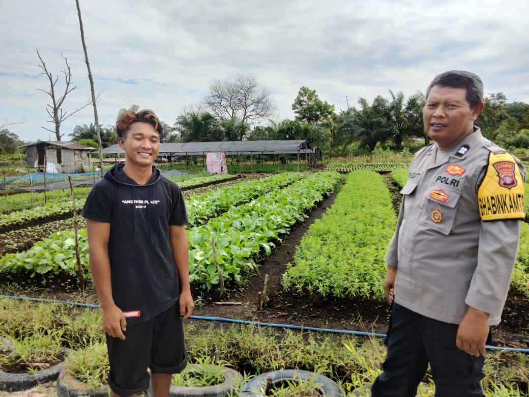 Bhabinkamtibmas Aiptu Sigit Purwantoro melakukan pengecekan kondisi lahan guna memastikan pertumbuhan dan kesuburan tanaman pangan bergizi milik warga serta siap panen dalam waktu dekat. Lahan ini menjadi bukti nyata upaya masyarakat dengan dukungan Bhabinkamtibmas Polsek Ketapang dalam mengelola sumber daya yang ada untuk memajukan ketahanan pangan lokal.