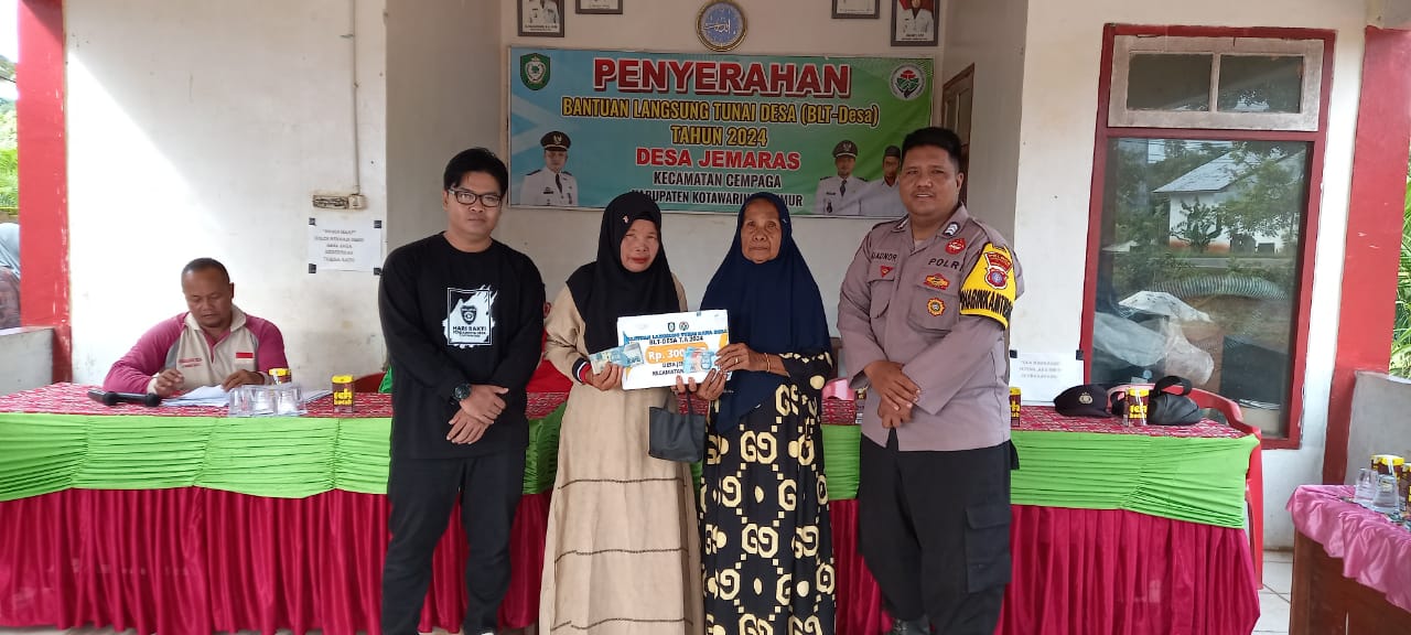 Kotim – Bhabinkamtibmas Polsek Cempaga Jajaran Polres Kotim Polda Kalteng menghadiri penyerahan Bantuan Langsung Tunai di Desa Jemaras Kecamatan Cempaga. Jumat (12/7/24), pagi 09.00 wib.