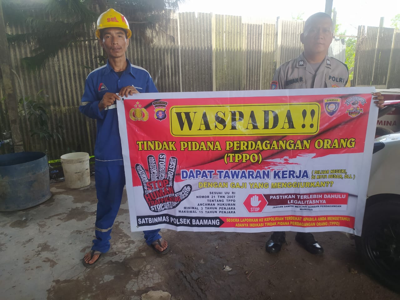 “Sosialisasi ini bertujuan agar masyarakat dapat menyampaikan kepada keluarganya untuk berhati-hati terhadap oknum yang menawarkan pekerjaan ke luar negeri dengan iming-iming gaji besar,” jelas Bhabinkamtibmas Polsek Baamang.