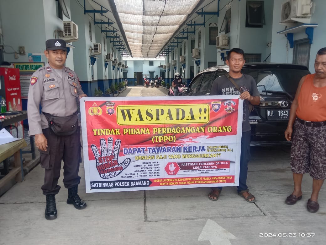 Dalam kegiatan, Bhabinkamtibmas Polsek Baamang, menjelaskan tentang definisi TPPO, modus operasi, jenis TPPO, alur perdagangan manusia ilegal, dampak yang terjadi dengan harapan agar seluruh masyarakat mengetahui dan terhindar dari modus tindak pidana perdagangan orang. No ratings yet.