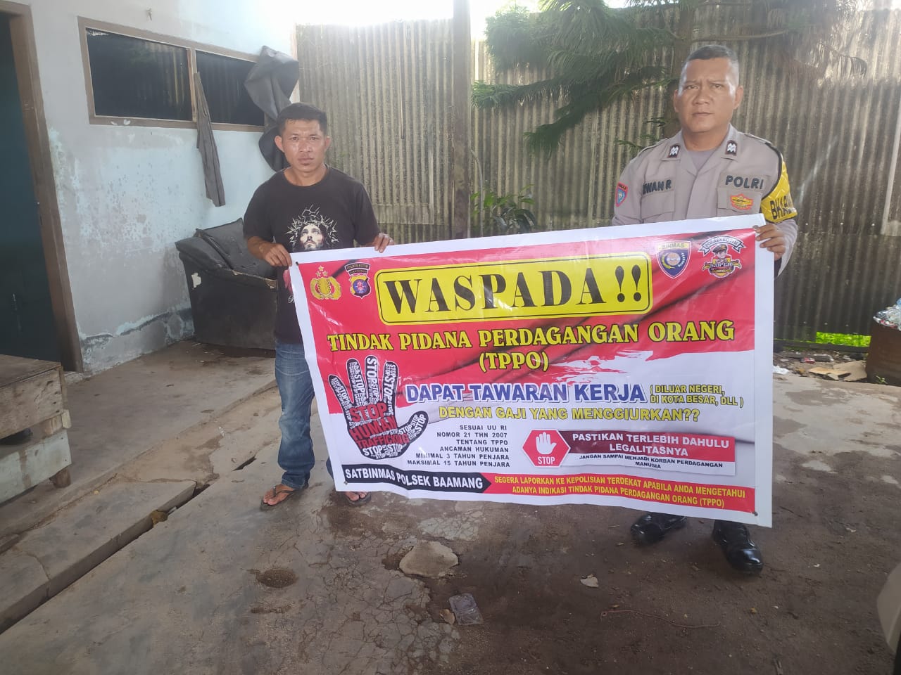 Dalam kegiatan Bhabinkamtibmas Polsek Baamang menjelaskan tentang definisi TPPO, modus operasi, jenis TPPO, alur perdagangan manusia ilegal dan dampak yang terjadi. Melalui sosialisasi itu diharapkan agar seluruh masyarakat mengetahui dan terhindar dari modus tindak pidana perdagangan orang.