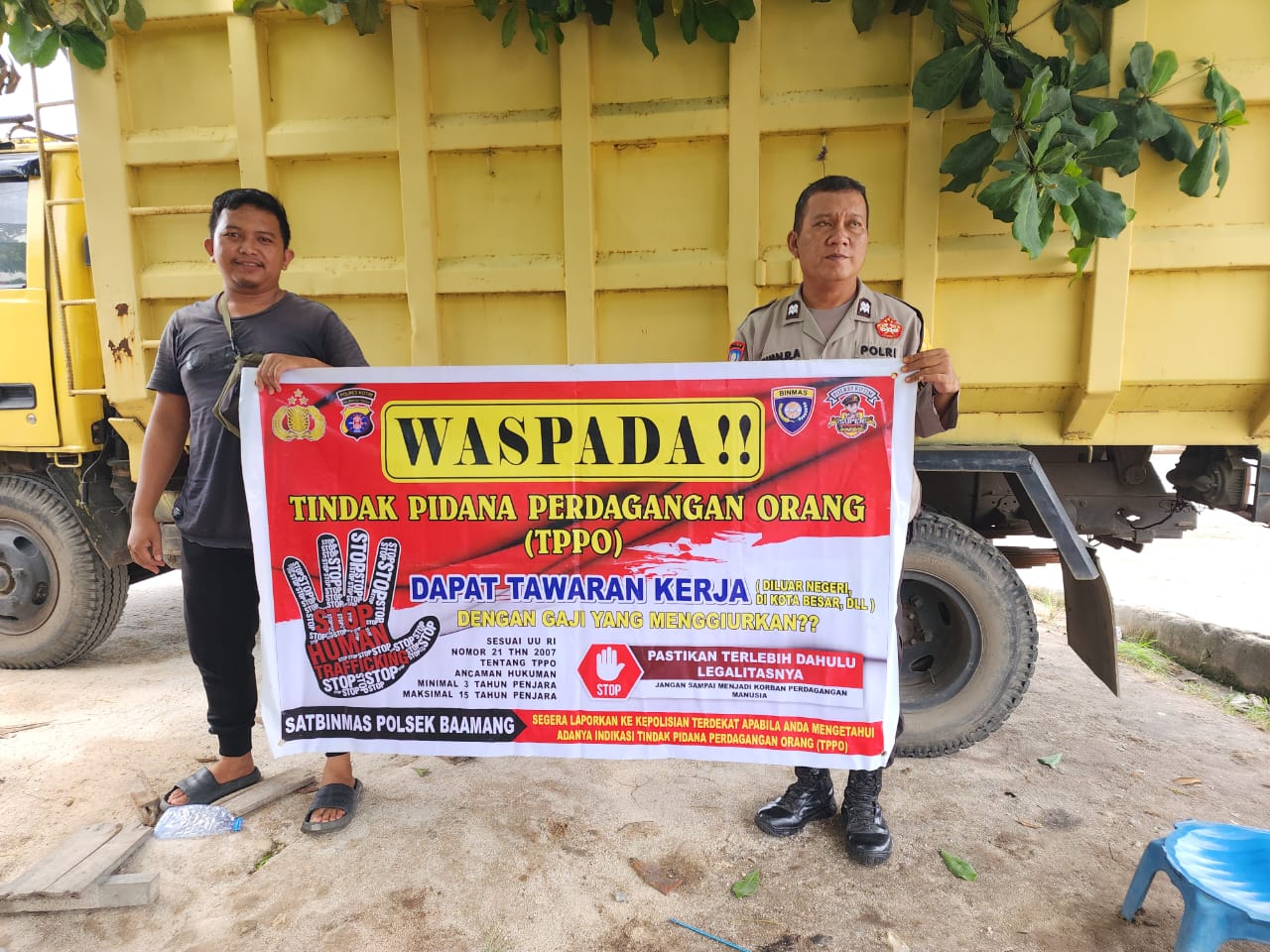 “Sosialisasi ini kami gelar agar masyarakat dapat mengingatkan keluarganya supaya berhati-hati terhadap oknum yang menawarkan pekerjaan ke luar negeri dengan iming-iming gaji besar,” ujar Bhabinkamtibmas Polsek Baamang.