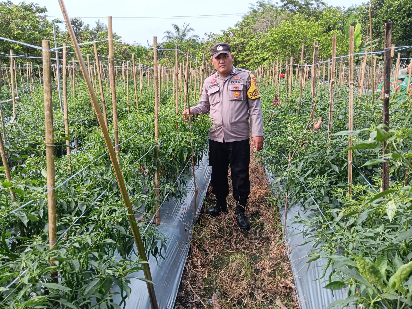 Kapolsek Baamang, AKP Moch. Romadhon, S.H., M.M., bersama Bhabinkamtibmas Bripka Dodi Cahyo Nugroho melakukan pengecekan terhadap pekarangan pangan milik warga bernama Sdr. Haris yang memanfaatkan lahan sekitar rumahnya untuk membudidayakan tanaman Cabai Keriting.