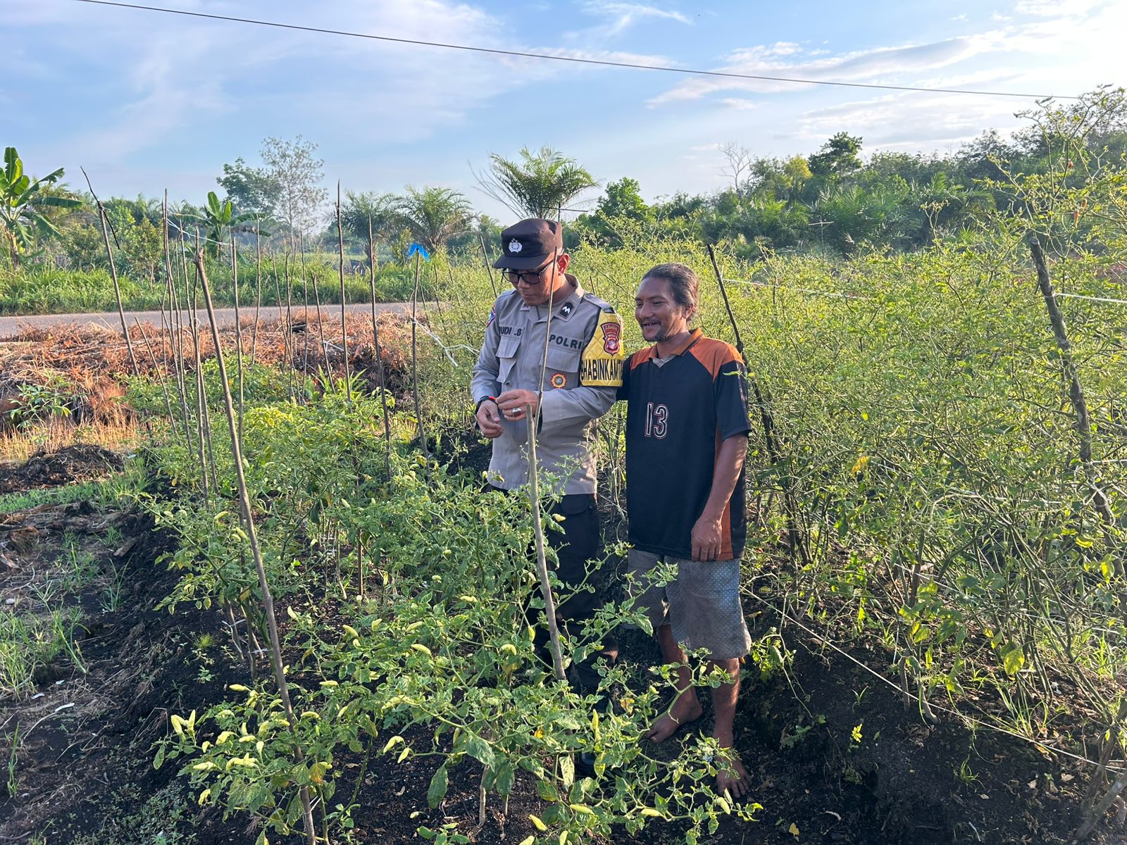 Bhabinkamtibmas Aipda Yudi Supriadi melakukan pengecekan lahan, Lahan ini menjadi bukti nyata upaya masyarakat dengan dukungan Bhabinkamtibmas Polsek Ketapang dalam mengelola sumber daya yang ada untuk memajukan ketahanan pangan lokal.