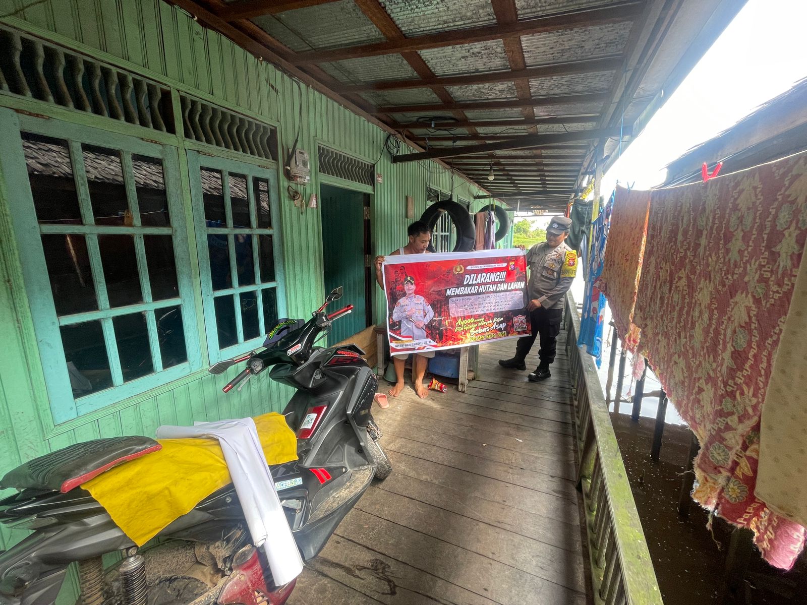 Bhabinkamtibmas Polsek Kota Besi melaksanakan sosialisasi karhutla di Kecamatan Kota Besi, meski sudah mulai musim penghujan.