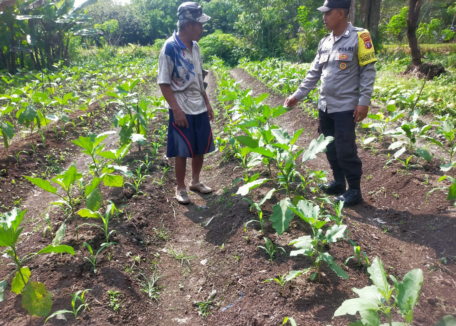 Bhabinkamtibmas Polsek Kota Besi Sambangi Pekarangan Pangan warga desa Binaaannya.