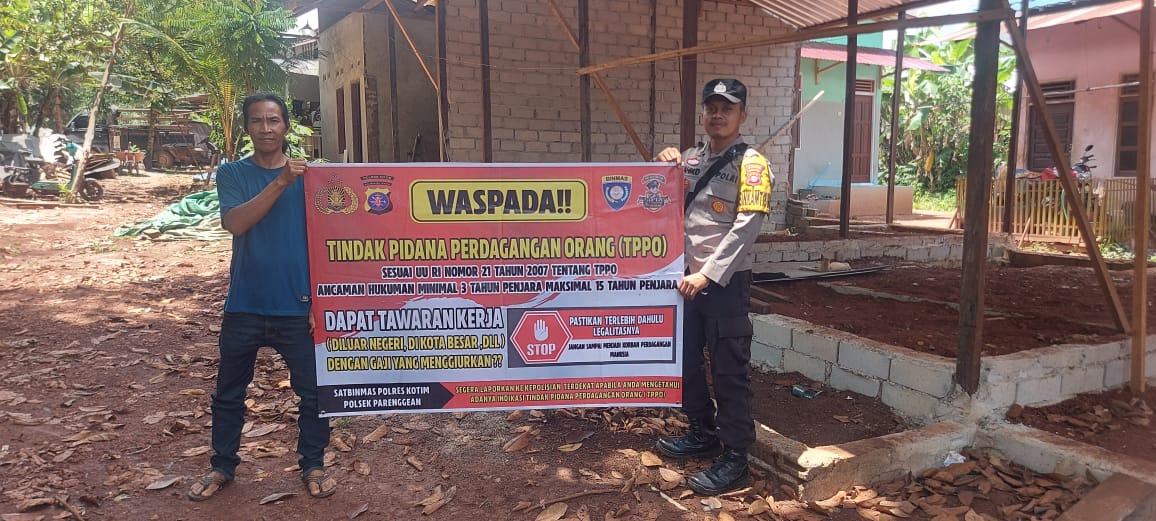 KOTIM – Bhabinkamtibmas polsek Parenggean Polres Kotim jajaran Polda Kalteng, gelar sosialisasi terkait dengan Tindak Pidana Perdagangan Orang (TPPO), kepada masyarakat Kel. Parenggean Kecamatan Parenggean, Kabupaten Kotawaringin Timur. Senin pagi (13/04/2025).