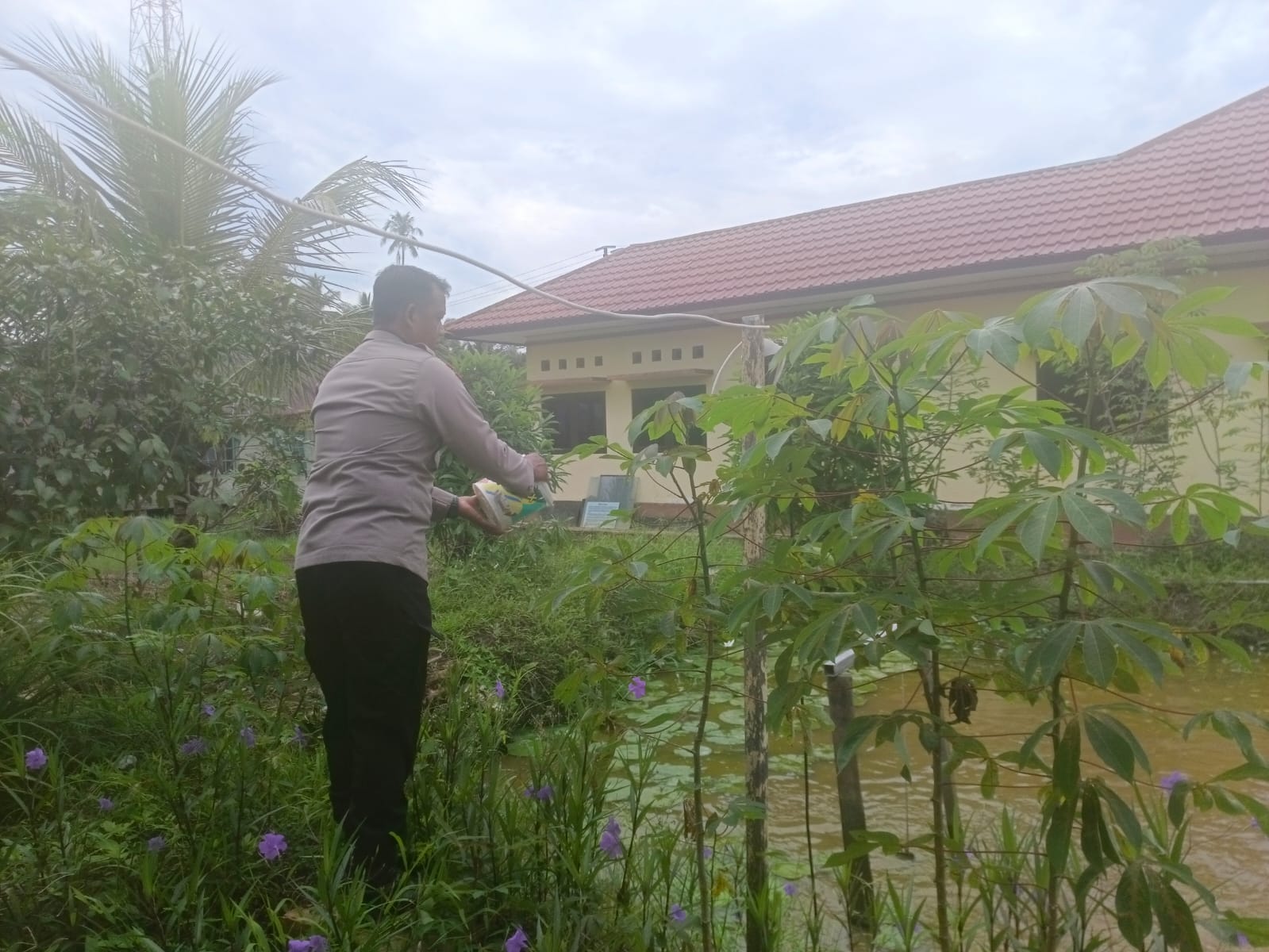 Pulau Hanaut – Bhabinkamtibmas Polsek Pulau Hanaut terus melakukan pengecekan tanaman di pekarangan guna program ketahanan pangan yang berada di kecamatan Pulau Hanaut Senin (18/08/2025).