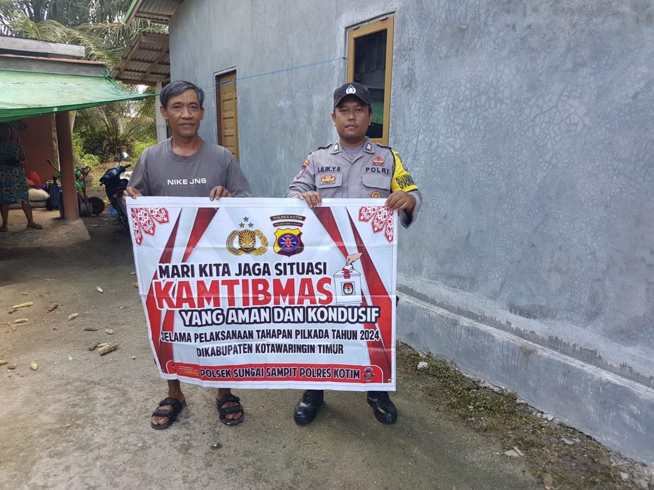 Kotim – Polsek Sungai Sampit Polres Kotawaringin Timur (Kotim) jajaran Polda Kalteng – Bhabinkamtibmas Polsek Sungai Sampit Bripka Lilik Yudhistira melaksanakan kegiatan sosialisasi mendukung Pemilihan Kepala Daerah (Pilkada) 2024 aman dan damai kepada warga Desa Sumber Makmur Kec. Mentaya Hilir Utara Kab. Kotim, Kamis (29/8/2024) pukul 09.00 WIB.