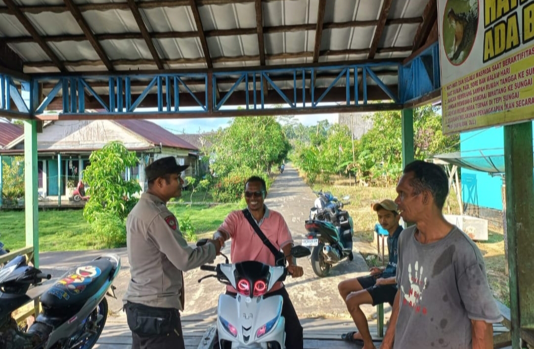 Pulau Hanaut ~ Upaya menjaga situasi kamtibmas yang aman dan kondusif terus dilakukan jajaran Polres Kotim, Salah satunya melalui kegiatan silaturahmi dan sambang Door To Door System yang dilaksanakan Bhabinkamtibmas Polsek Pulau Hanaut Aipda H.A.Rusli, SH, Kegiatan berlangsung Senin(27/4/2026) Siang
