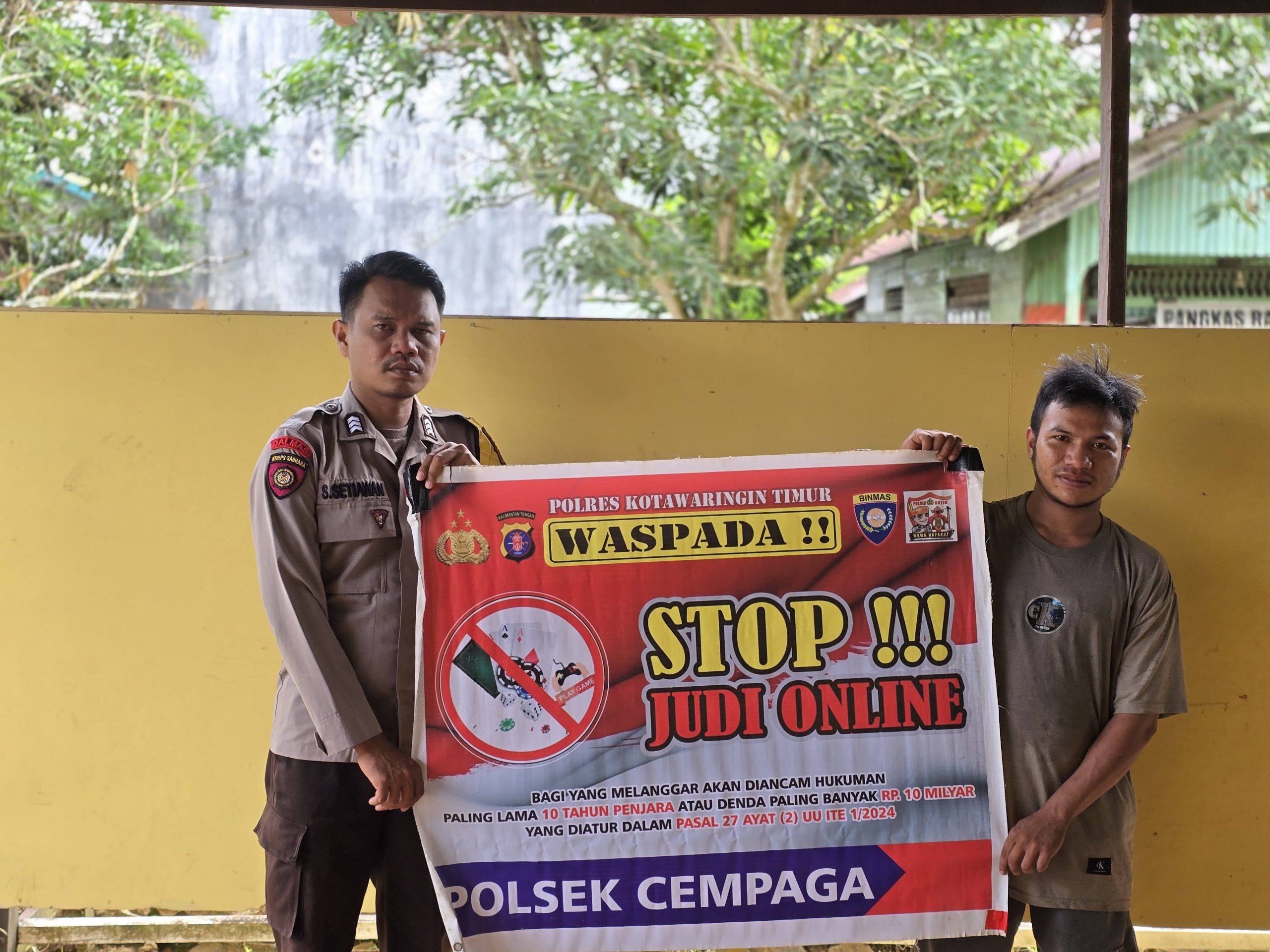 Kotim- Bhabinkamtibmas Polsek Cempaga Polres Kotim (Kotawaringin Timur) jajaran Polda Kalteng, gelar sosialisasi terkait dengan larangan Tindak Pidana Perjudian, kepada warga Desa Cempaka Mulia Barat Kecamatan Cempaga Kabupaten Kotawaringin Timur. Sabtu (19/7/2025) 10.30 wib.