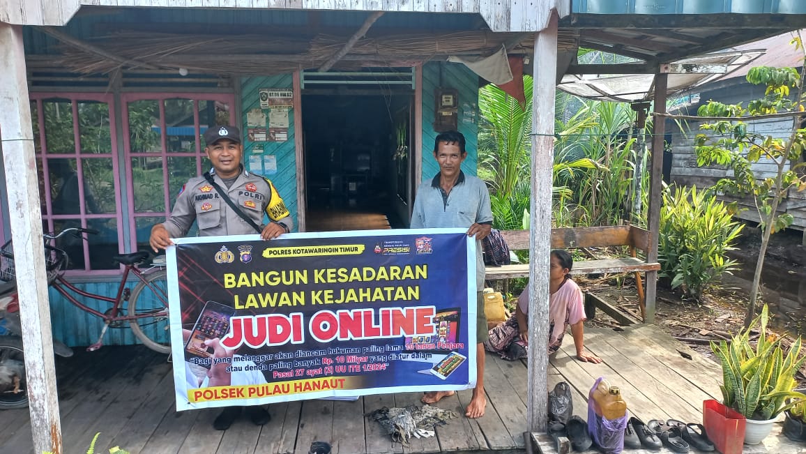 Pulau Hanaut – Personil Polsek Pulau Polres Kotim jajaran Polda Kalteng, gelar sosialisasi terkait dengan larangan Tindak Pidana Perjudian, kepada Masyarakat yang ada diwilayah Kec. Pulau Hanaut Kab.Kotim, Kamis (09/1/2025)