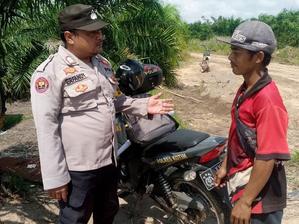 Polres Kotim –Sebagai upaya dini mencegah terjadinya kebakaran hutan dan lahan, Bhabinkamtibmas Polsek Ketapang Polres Kotim (Kotawaringin Timur) jajaran Polda Kalteng Aiptu Erfandy Dani Ardianto,S.H laksanakan sosialisasi larangan membakar hutan dan lahan (Karhutla, Jumat (7/11/2024) siang.