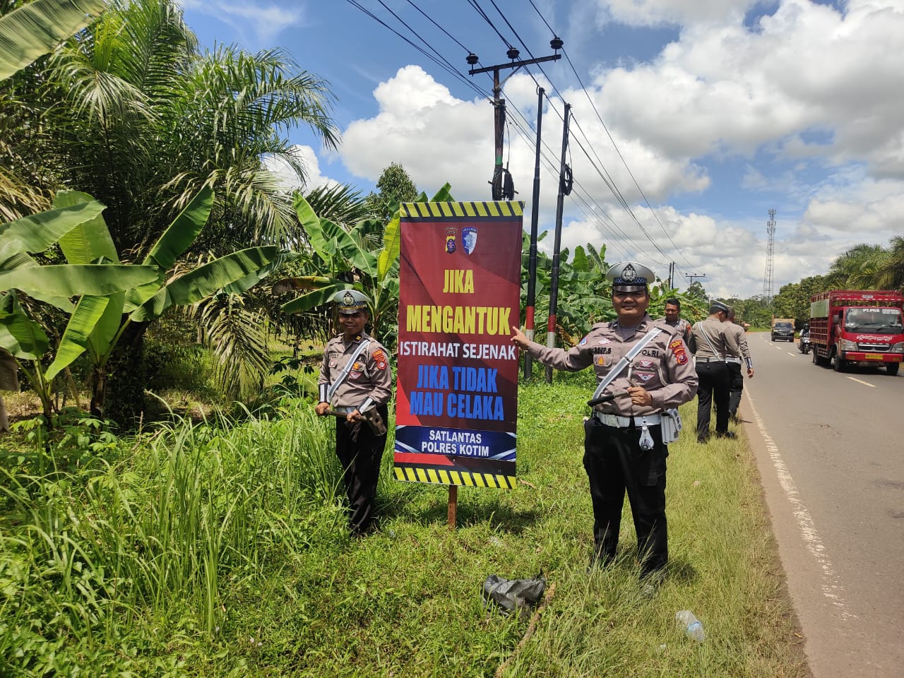 Kotim – Sebagai bentuk upaya pencegahan laka lantas Sat Lantas Polres Kotim Pasang Spanduk Himbauan keselamatan, Kamis (17/04/2025), Pagi