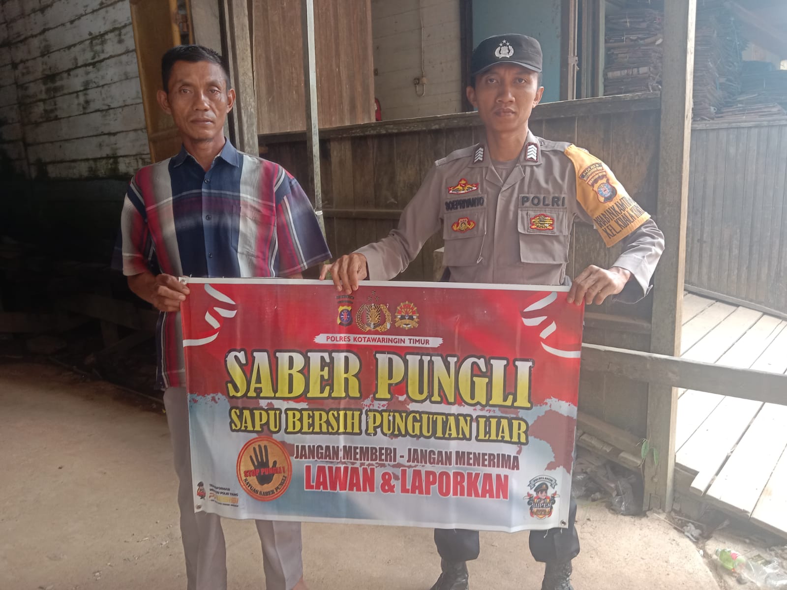 Dalam sosialisasi tersebut personil Polsek Mentaya Hulu membentangkan spanduk Stop Pungli dan menyampaikan Perpres RI. No.87 Tahun 2016 tentang Saber Pungli, Peraturan Presiden tersebut menegaskan larangan untuk melakukan praktek pungli dalam bentuk apapun baik berupa penyuapan, gratifikasi, meminta imbalan kepada pihak manapun secara ilegal / dengan paksaan sehingga dapat merugikan  masyarakat, khususnya masyarakat yang akan menerima bantuan dari pemerintah.