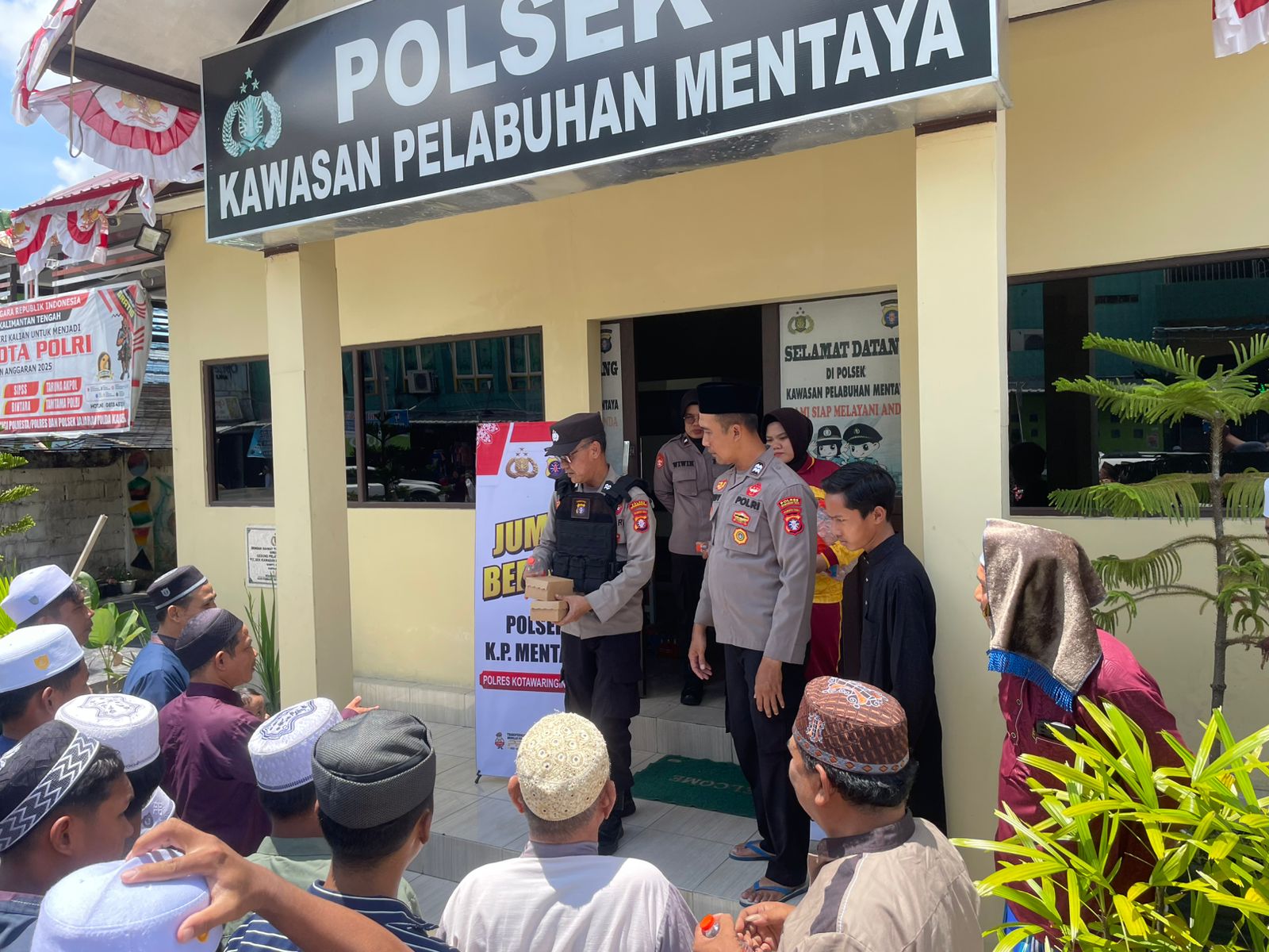 Kotim – Polsek KP. Mentaya Polres Kotawaringin Timur bagikan makanan dan minuman kepada masyarakat sekitar Polsek Kawasan Pelabuhan Mentaya dan Jamaah Masjid yang selesai melaksanakan Shalat Jumat Jumat(11/10/2024) siang.