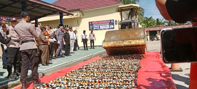 “AKBP Indra Arya Yudha.,SH.SIK MH Kapolres OKU Selatan menyampaikan pemusnahan barang bukti ( BB ) Minuman Keras dan petasan ini adalah hasil dari Operasi Pekat Musi tersebut di dapatkan sejumlah minuman keras sebanyak 937 terdiri dari berbagai minuman keras seperti, Anggur Merah 30 botol, Vigour 348 botol, Newport 12 botol , Mansion 147 botol, Sampurna 400 dan Vodka 7 botol selain dari minuman keras turut juga di amankan dan akan di musnahkan barang bukti petasan sebanyak 100 buah yang terdiri dari 95 Petasan Korek dan 5 petasan stik,” ungkapnya.