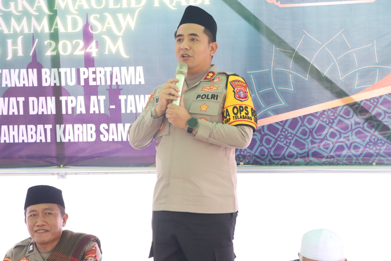 Kotim – Kapolres Kotim Hadiri Kegiatan Diva Bersholawat Dalam Rangka Maulid Nabi Muhammad 1446 H/2024M dan Peletakan Batu Pertama Majelis Sholawat Dan TPA AT-TAWWABIN Cabang Sahabat Karib Sampit. Yang berlokasi di Jl. Sawit Raya II A,Kelurahan Pasir Putih Kecamatan MB Ketapang Kab. Kotim. Minggu Pagi (29/09/24).