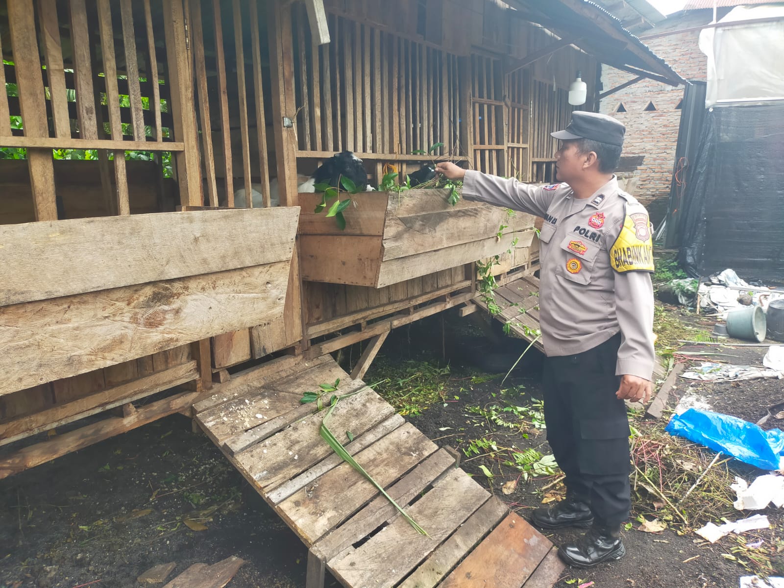 Dalam kegiatan tersebut, Bhabinkamtibmas AIPTU IRWAN ROCHMAN A melakukan pengecekan terhadap pekarangan milik warga bernama Bapak imam yang membudidayakan pertenakan kambing.