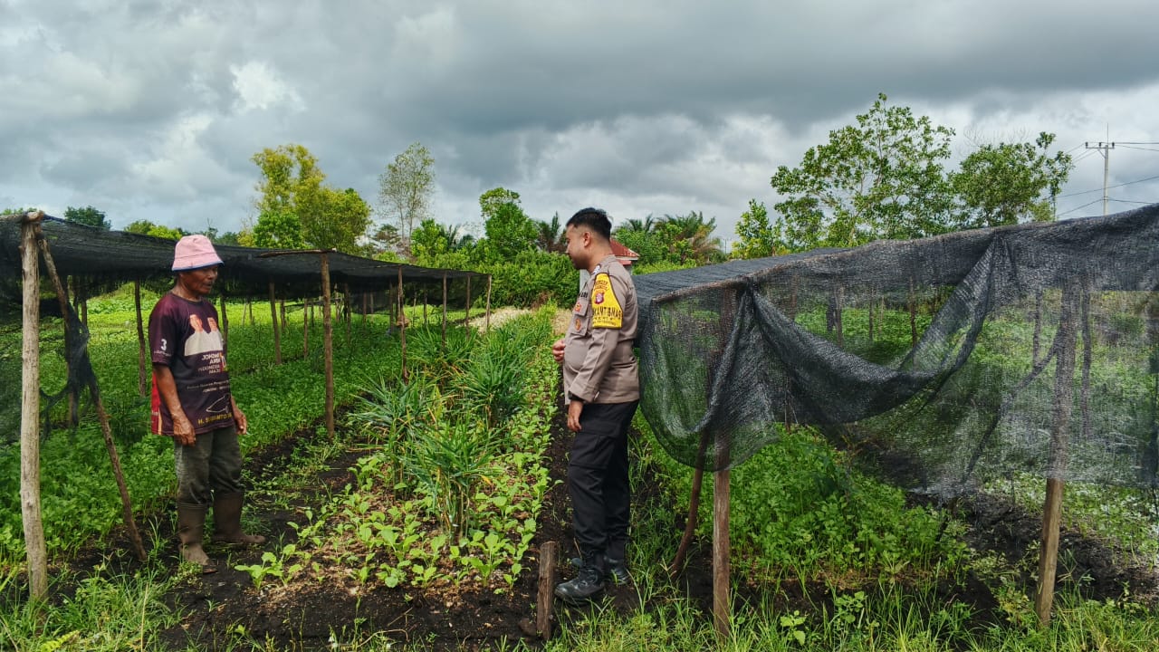 Bhabinkamtibmas , Brigpol M Fahrizal melakukan pengecekan lahan untuk memastikan pertumbuhan dan kesuburan tanaman pangan bergizi milik warga, Lahan ini menjadi bukti nyata upaya masyarakat dengan dukungan Bhabinkamtibmas Polsek Ketapang dalam mengelola sumber daya yang ada untuk memajukan ketahanan pangan lokal.