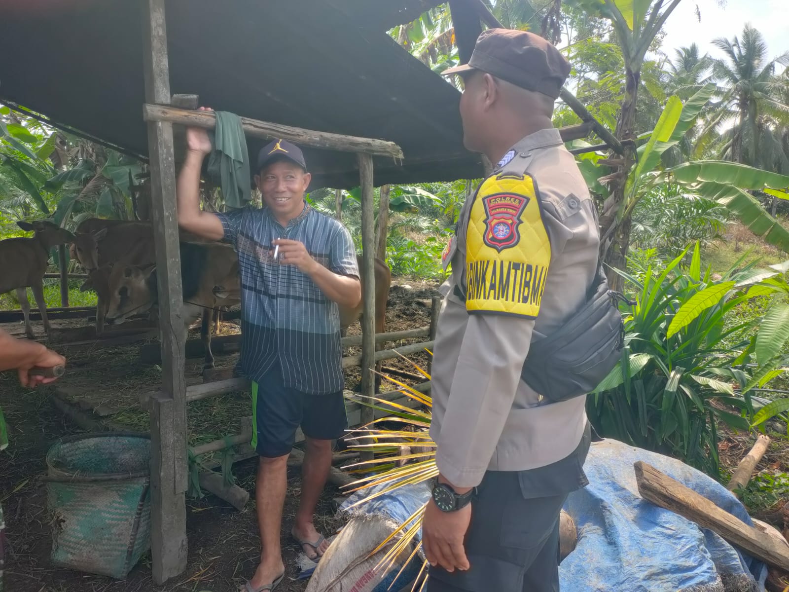 Pulau Hanaut ~ Dalam upaya mendukung ketahanan pangan Nasional di bidang Peternakan, Bhabinkamtibmas Desa Babirah Polsek Pulau Hanaut Bripka H.A. Rusli, SH melakukan sambang ke warga peternak sapi di Desa Babirah Kec.Pulau Hanaut Kab. kotim Prov.Kalteng, Minggu (29/6/2025).