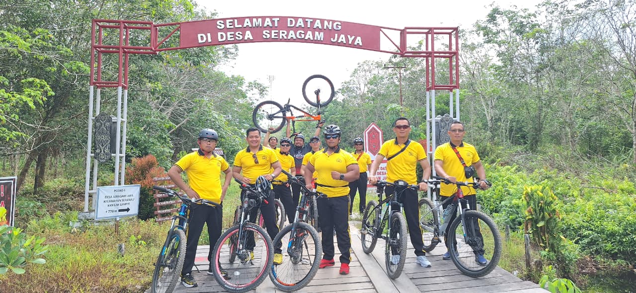 Gowes yang dimulai tepat pukul 07.00 WIB ini mengambil titik start dari kawasan Mentaya Seberang. Seluruh personel tampak antusias mengayuh sepeda mereka, menempuh jarak yang berakhir di Desa Seragam Jaya.