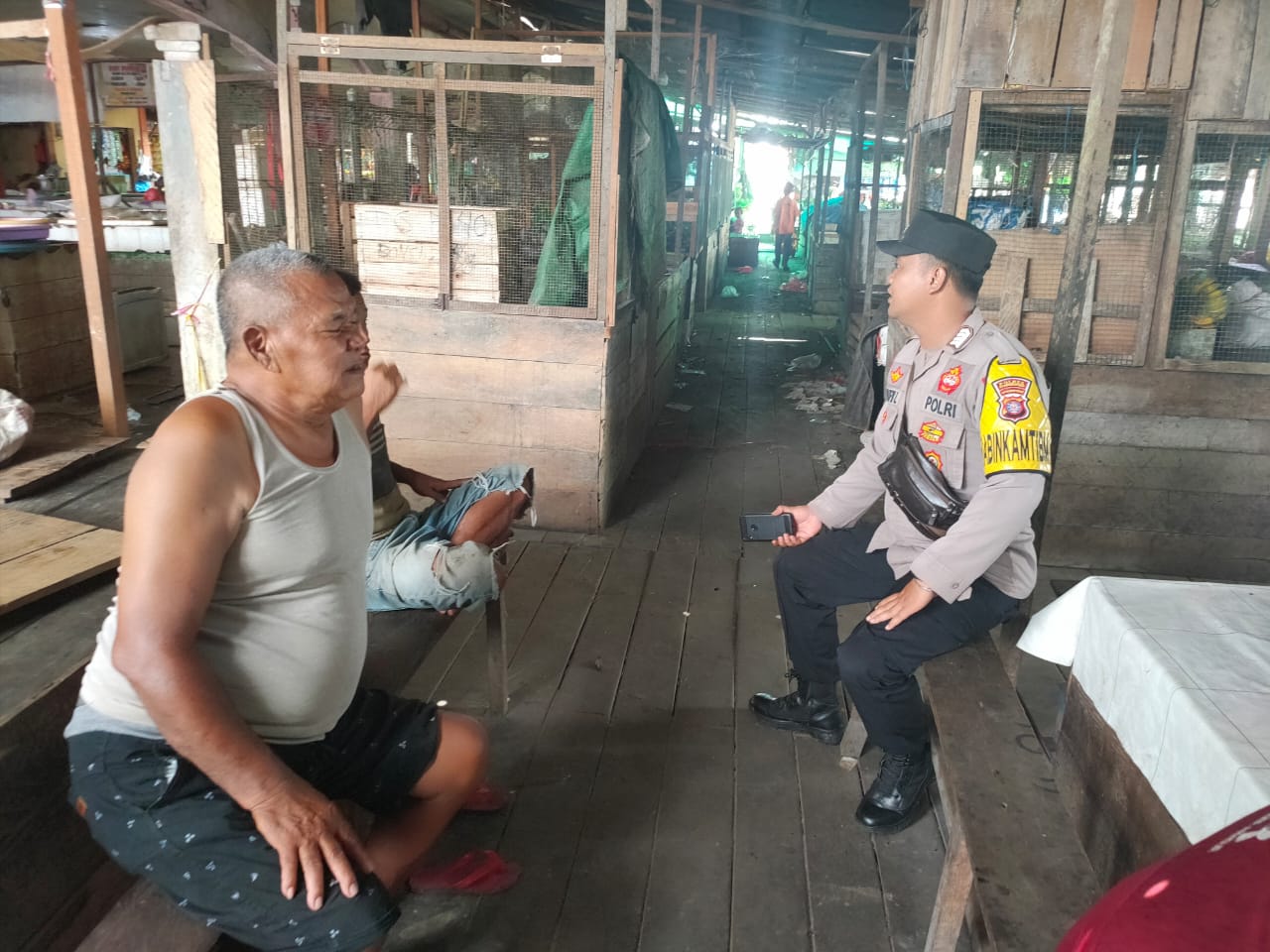 Polres Kotim, Polsek Jaya Karya,- “Bhabinkamtibmas Kalurahan Basirih Hilir Bripka Taufik isnainto melaksanakan patroli dialogis dengan menyambangi pasar tradisional sembari memberikan imbauan Kamtibmas untuk waspadai peredaran uang palsu. Minggu (09/06/2024).