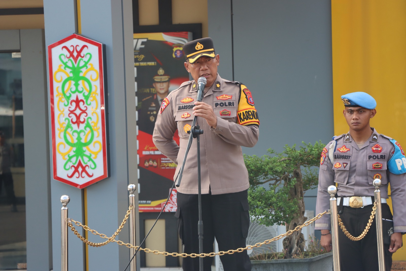 Sampit – Kepala Bagian Operasi (Kabag Ops) Polres Kotawaringin Timur, Kompol Marsono S.H., M.M., memimpin apel pagi dihalaman Polres Kotim pada hari Selasa, 18 November 2025. Pagi