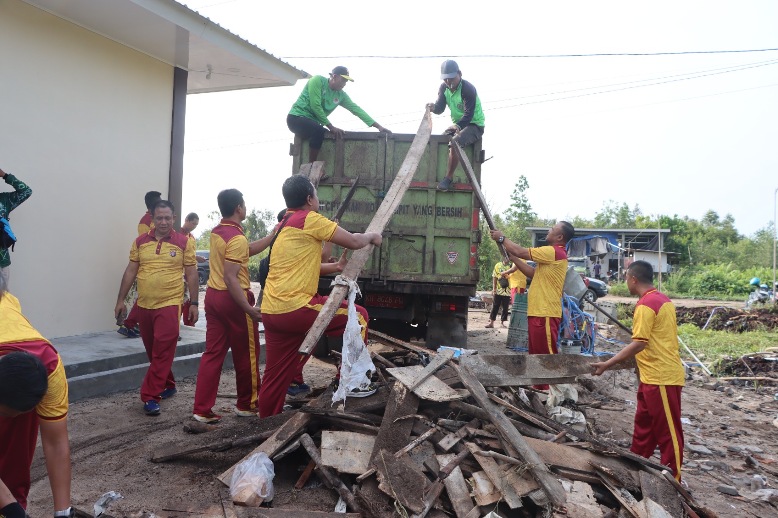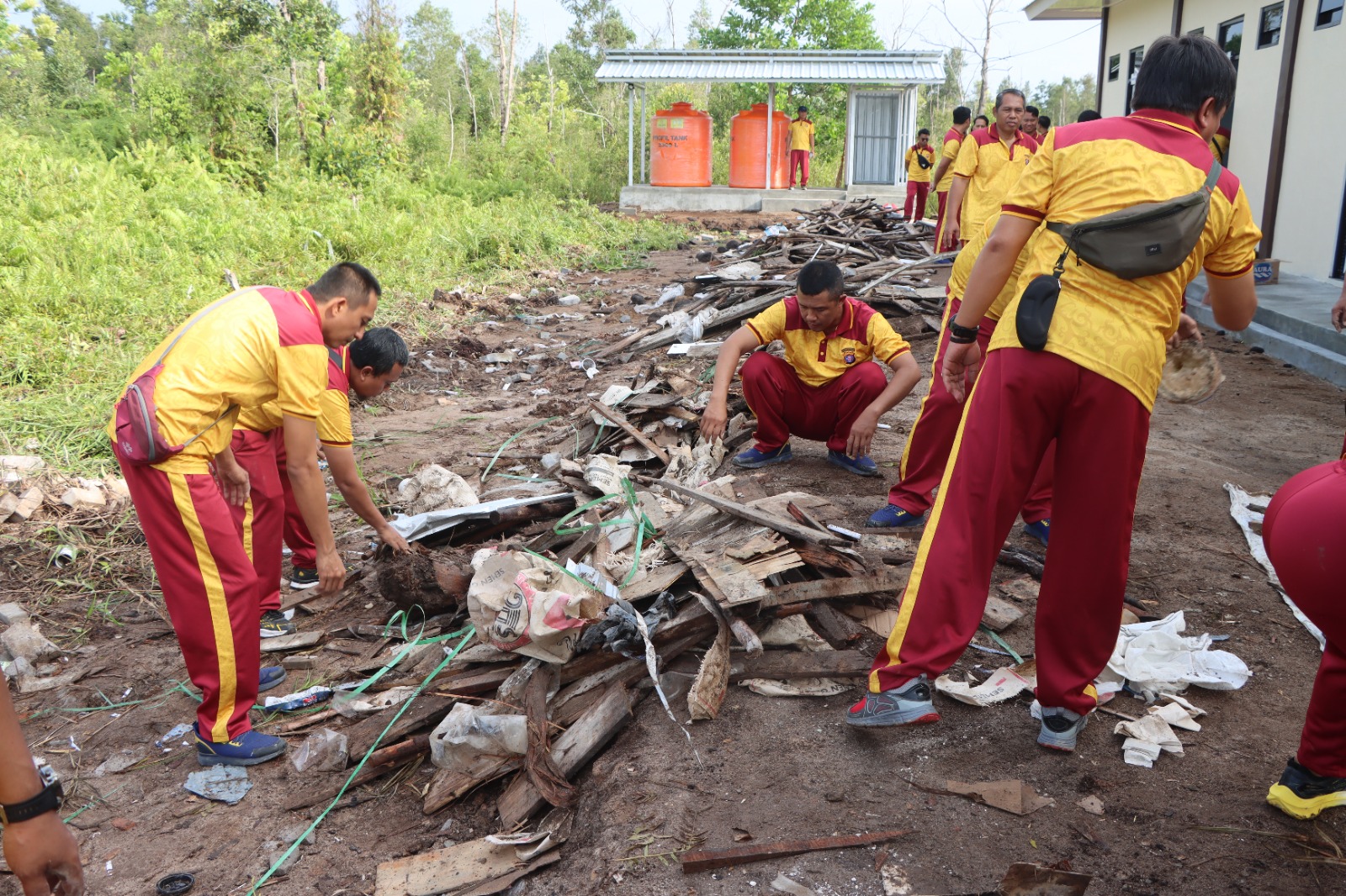 Dengan antusias dan penuh semangat, personil Polres Kotim gotong royong melaksanakan pembersihan terhadap sisa-sisa kayu bekas pembangunan SPPG dan sampah lainnya yang berada baik di dalam bangunan SPPG maupun di luar bangunan.