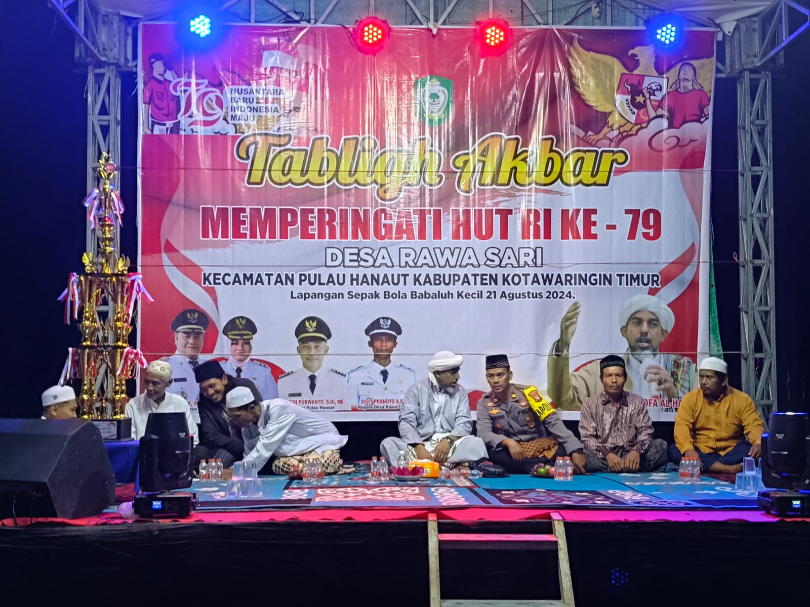 Pulau Hanautr–Dalam rangka memperingati Hari Ulang Tahun Republik Indonesia (HUT RI) ke-79, Pemerintah Desa Rawa Sari mengadakan acara Tabligh Akabar dengan mendatangkan Penceramah HABIB MUSTHOFA AL HADDAR, bertempat di Lapangan Sepak Bola Desa Rawa Sari Kec.Pulau Hanaut, Rabu (21/8/2024) Malam.