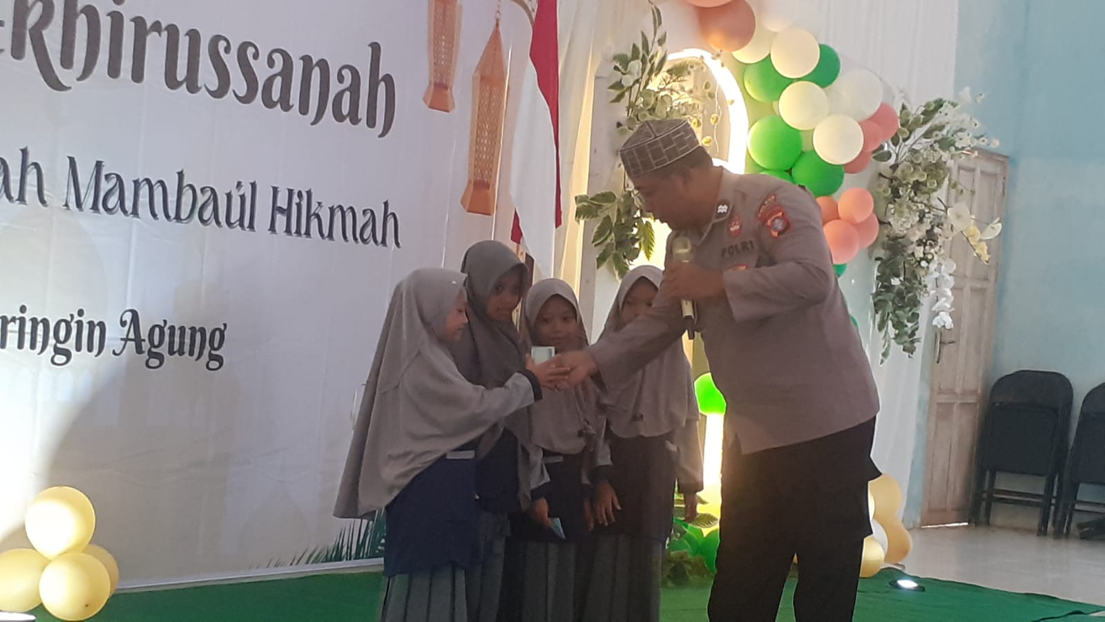 Kotim – Kapolsubsektor Telaga Antang Polsek Antang Kalang jajaran Polres Kotim Polda Kalteng Aiptu YOYO PRASETIO, S.Sos. menghadiri Kegiatan Haflaf Akhirussanah Madrasah Diniyah Mambaul Hikmah bertempat di Balai Desa Beringin Agung Kec. Telaga Antang Kab. Kotim, Minggu (02/06/2024) siang.