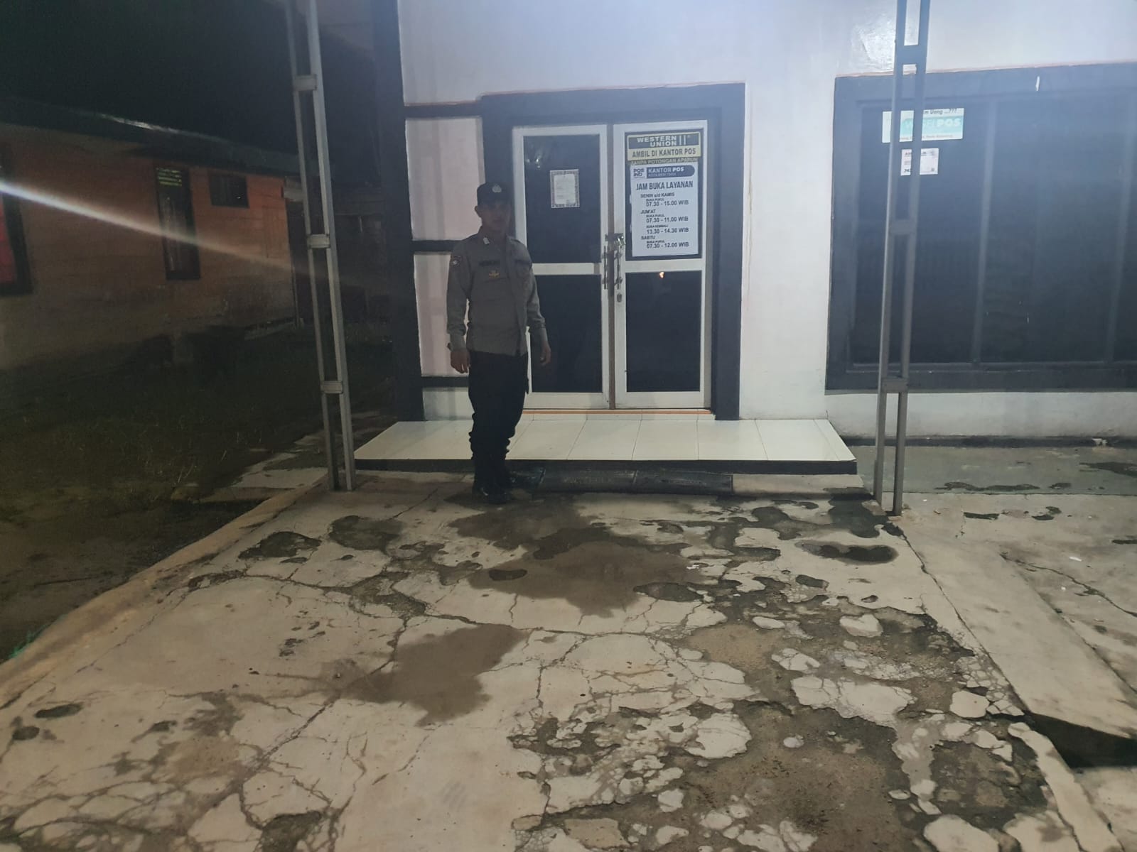 Lakasanakan Patroli Malam Hari dan Dini Hari, Piket Polsek Kota Besi rutin cek objek vital di kecamatan Kota Besi