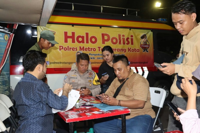 Baraknews KOTA TANGERANG, – Terus berinovasi dalam memudahkan masyarakat mendapatkan pelayanan kepolisan di wilayah hukum Polres Metro Tangerang Kota, Kapolres Metro Tangerang Kota, Kombes Pol Zain Dwi Nugroho meluncurkan layanan ‘Halo Polisi’ di lokasi keramaian dimalam hari sebagai tindak lanjut Program “Halo Polisi” yang digagas oleh Kapolda Metro Jaya Irjen Pol Karyoto,SIK.
